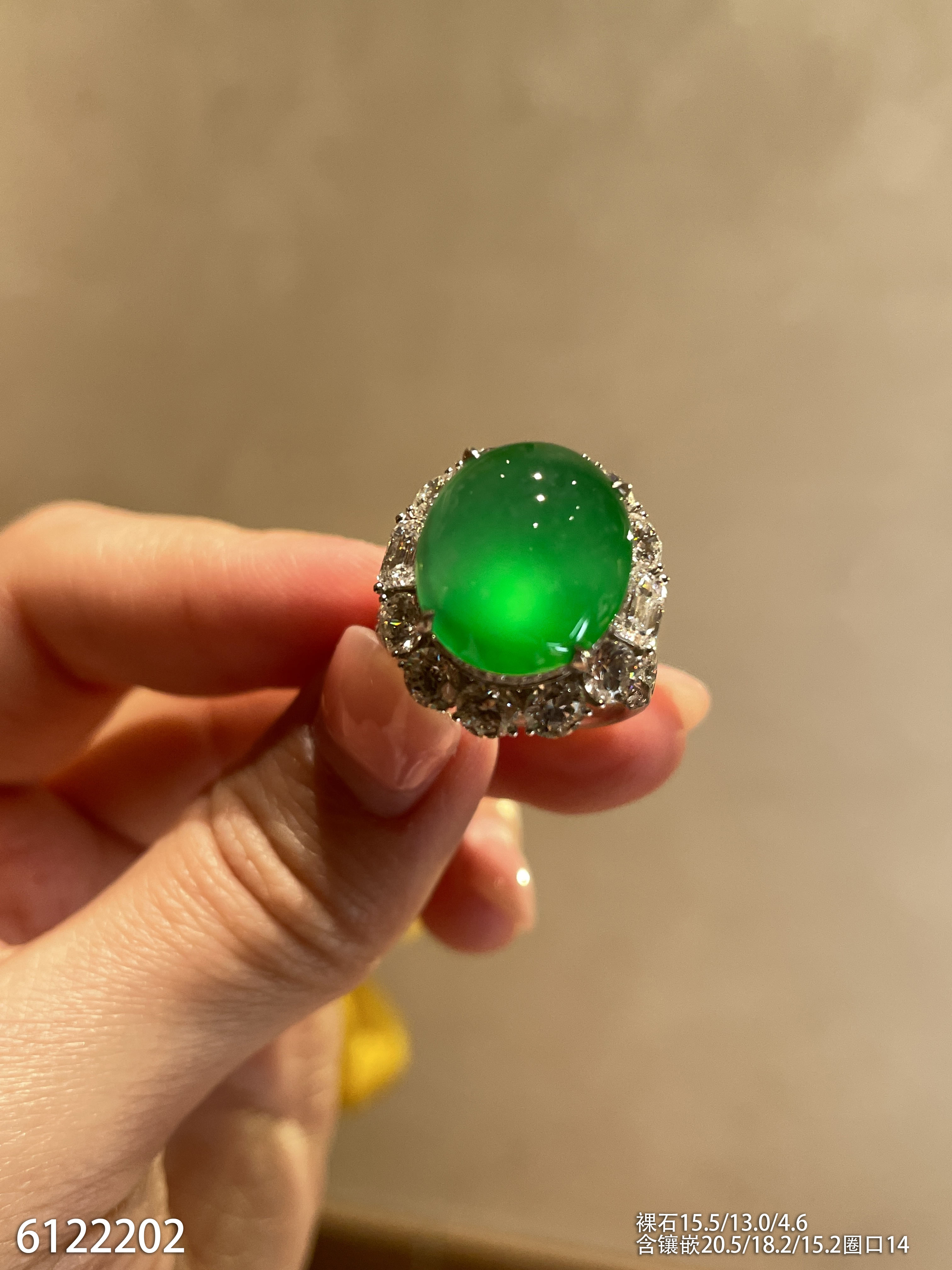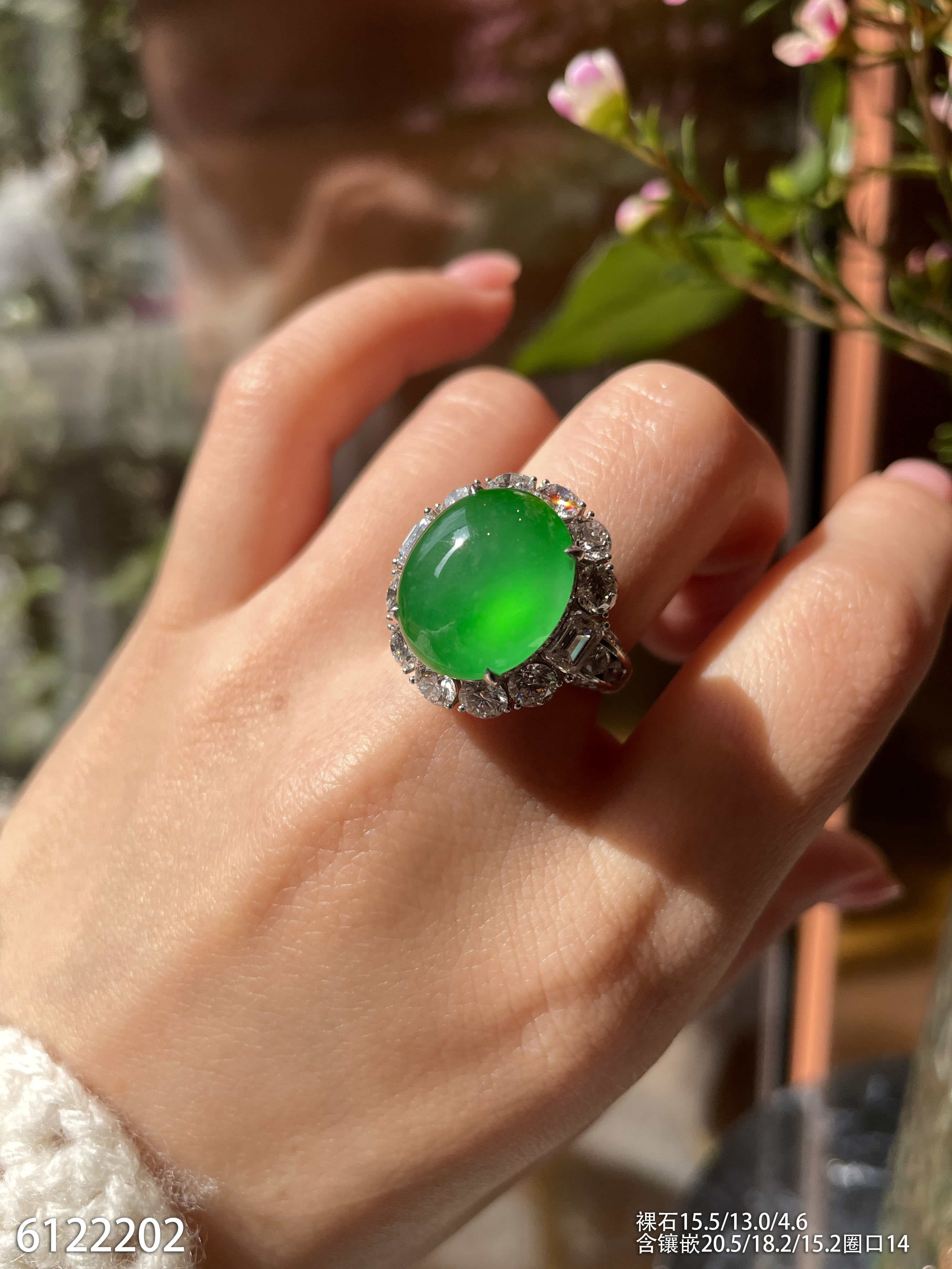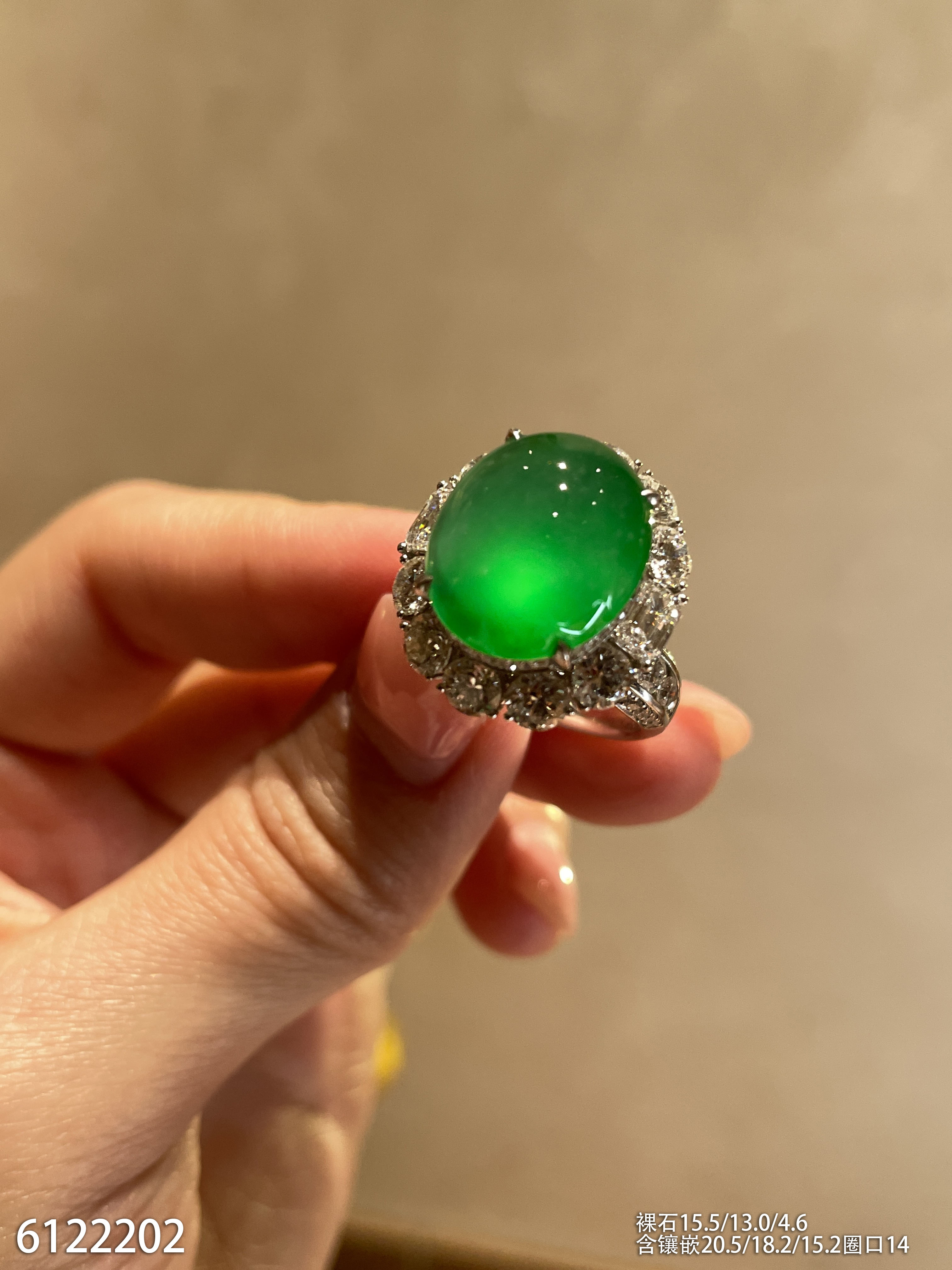 玻璃种蛋面戒指【6190801】具体价格微信咨询
