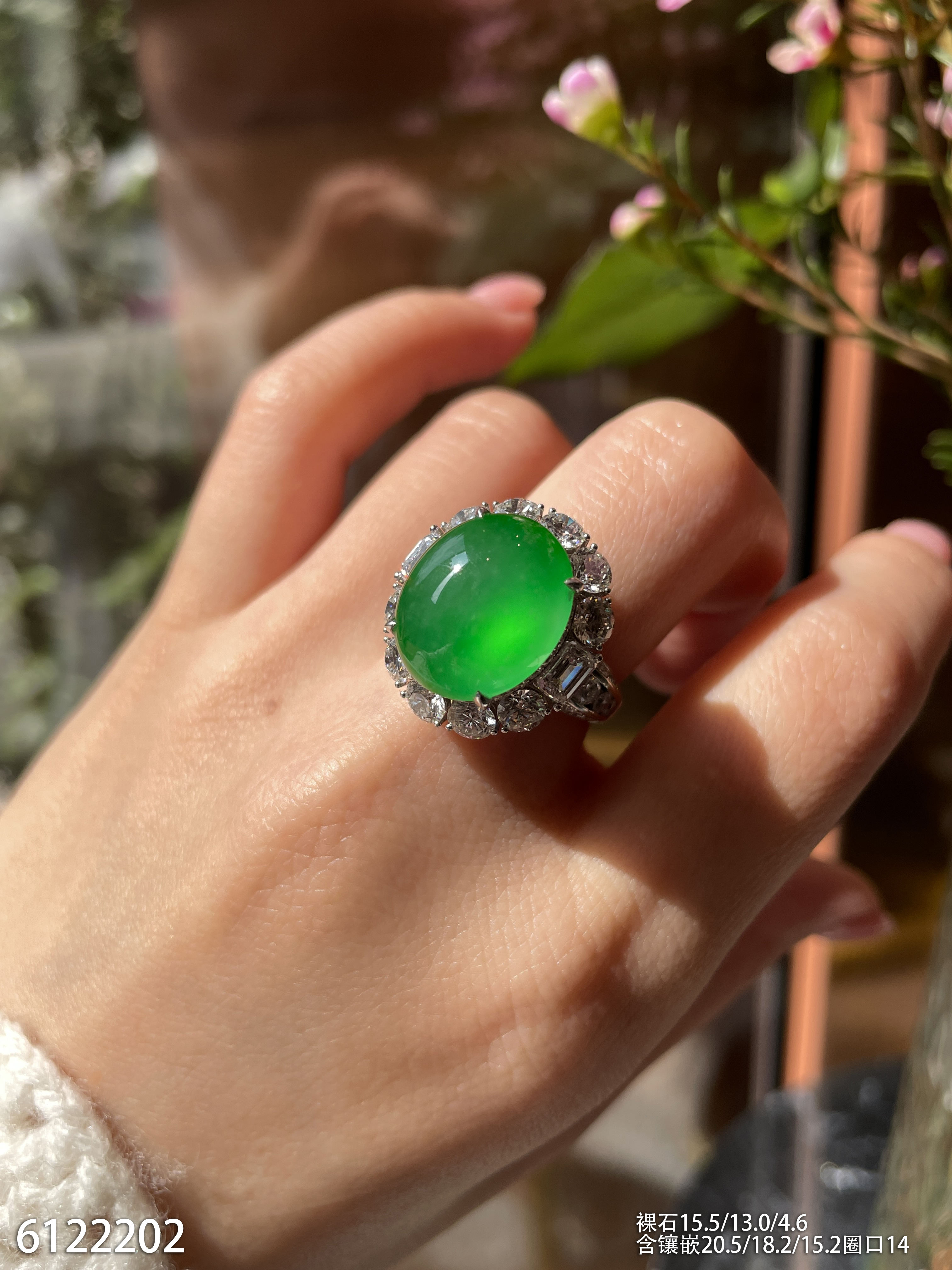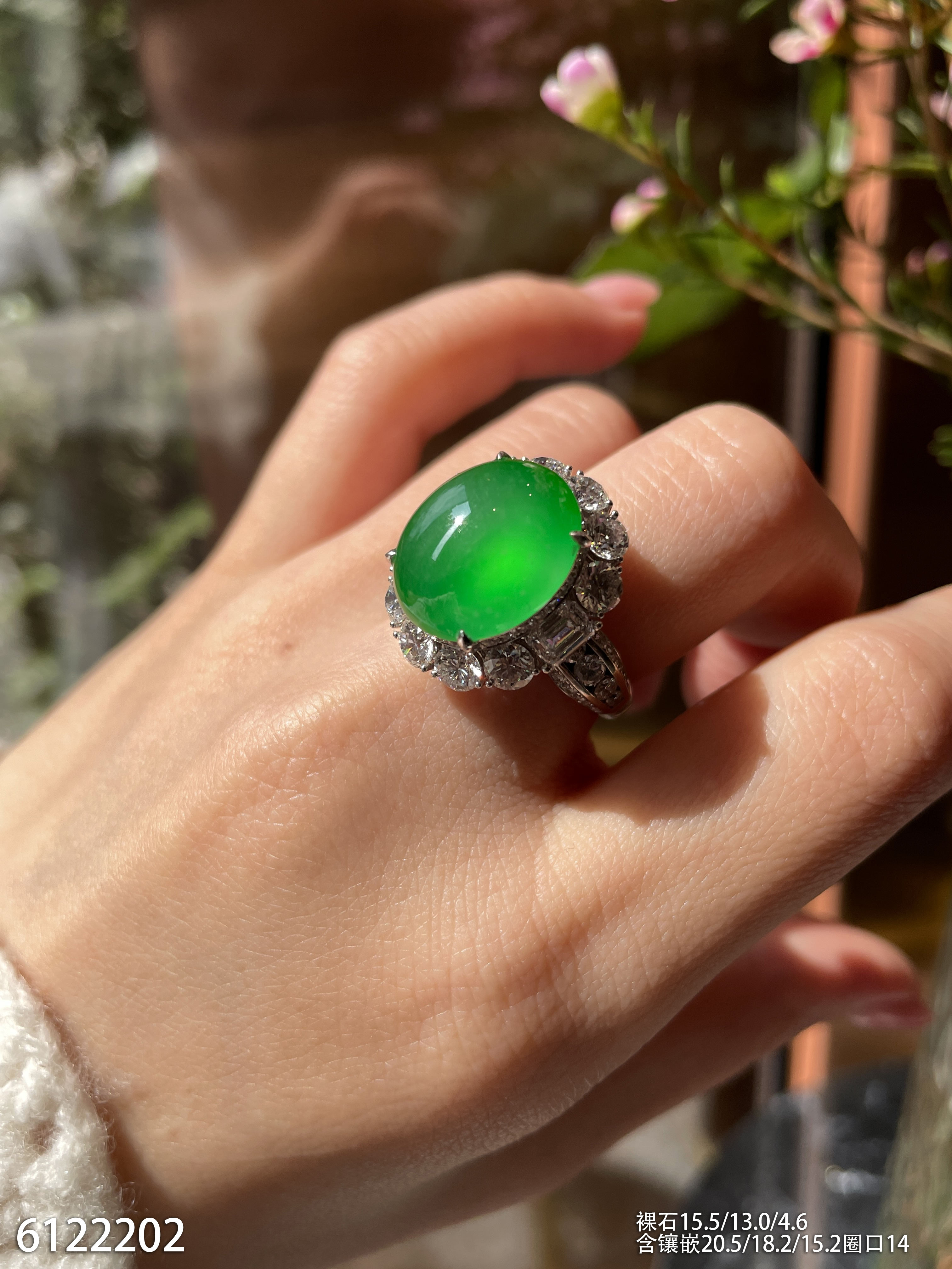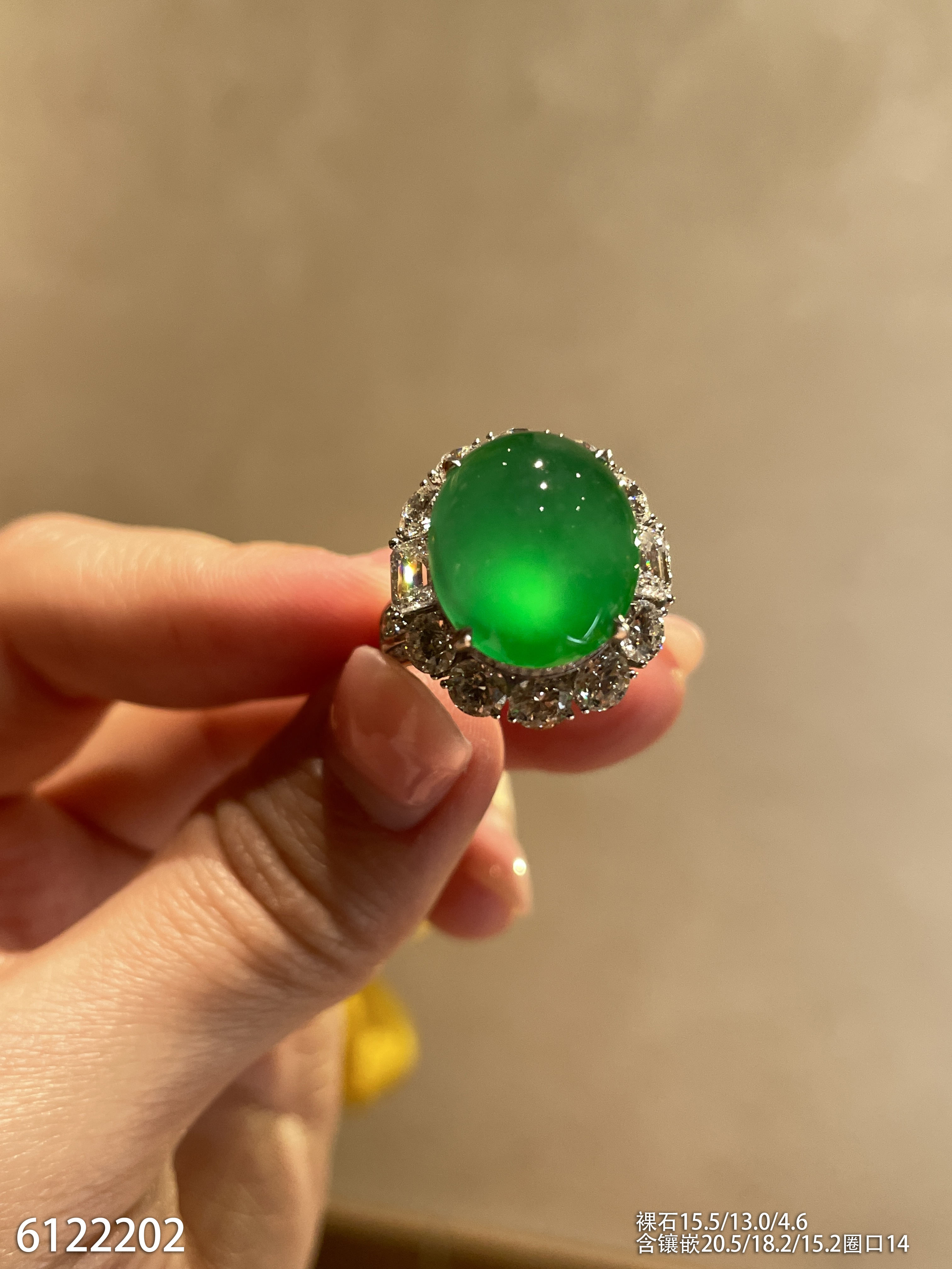 玻璃种蛋面戒指【6190801】具体价格微信咨询