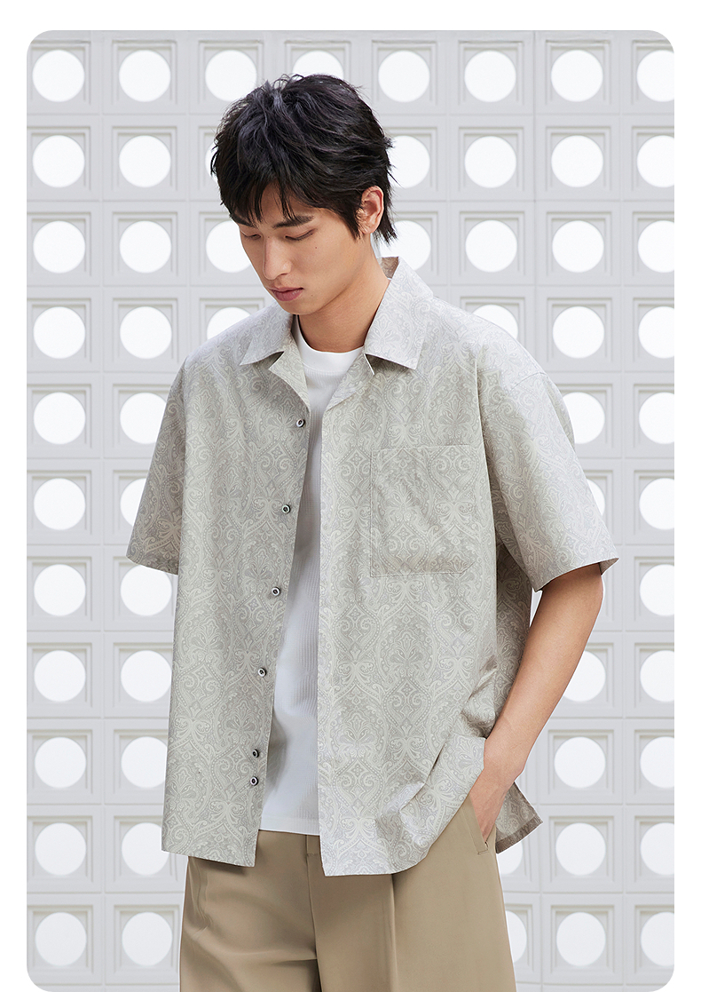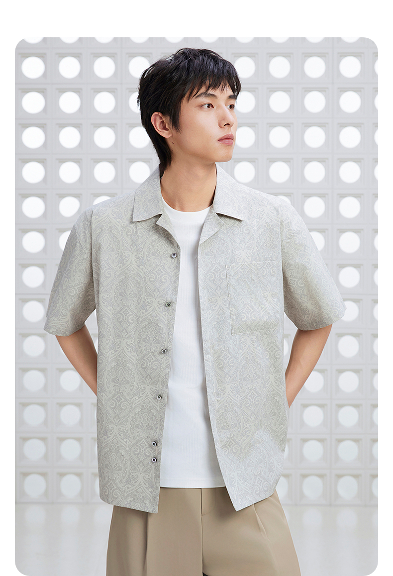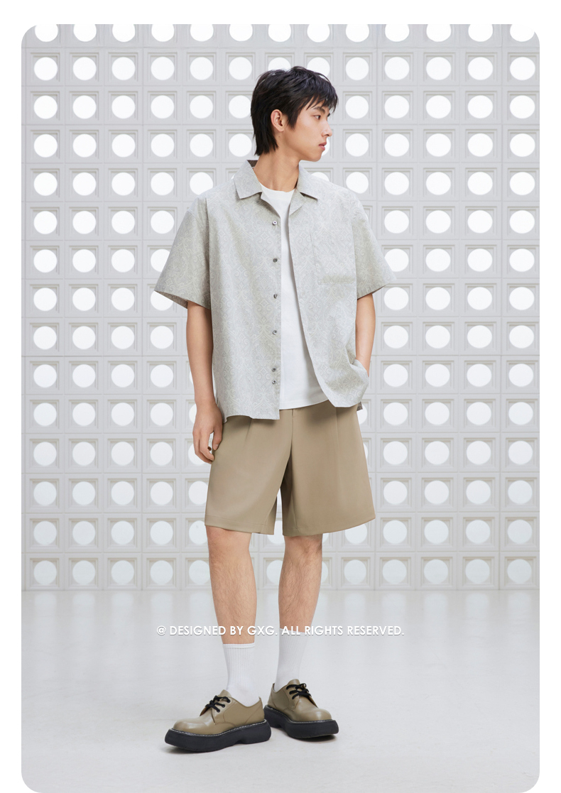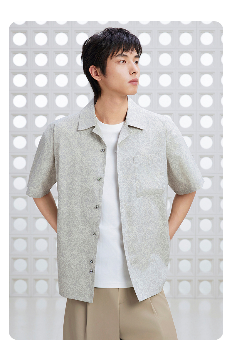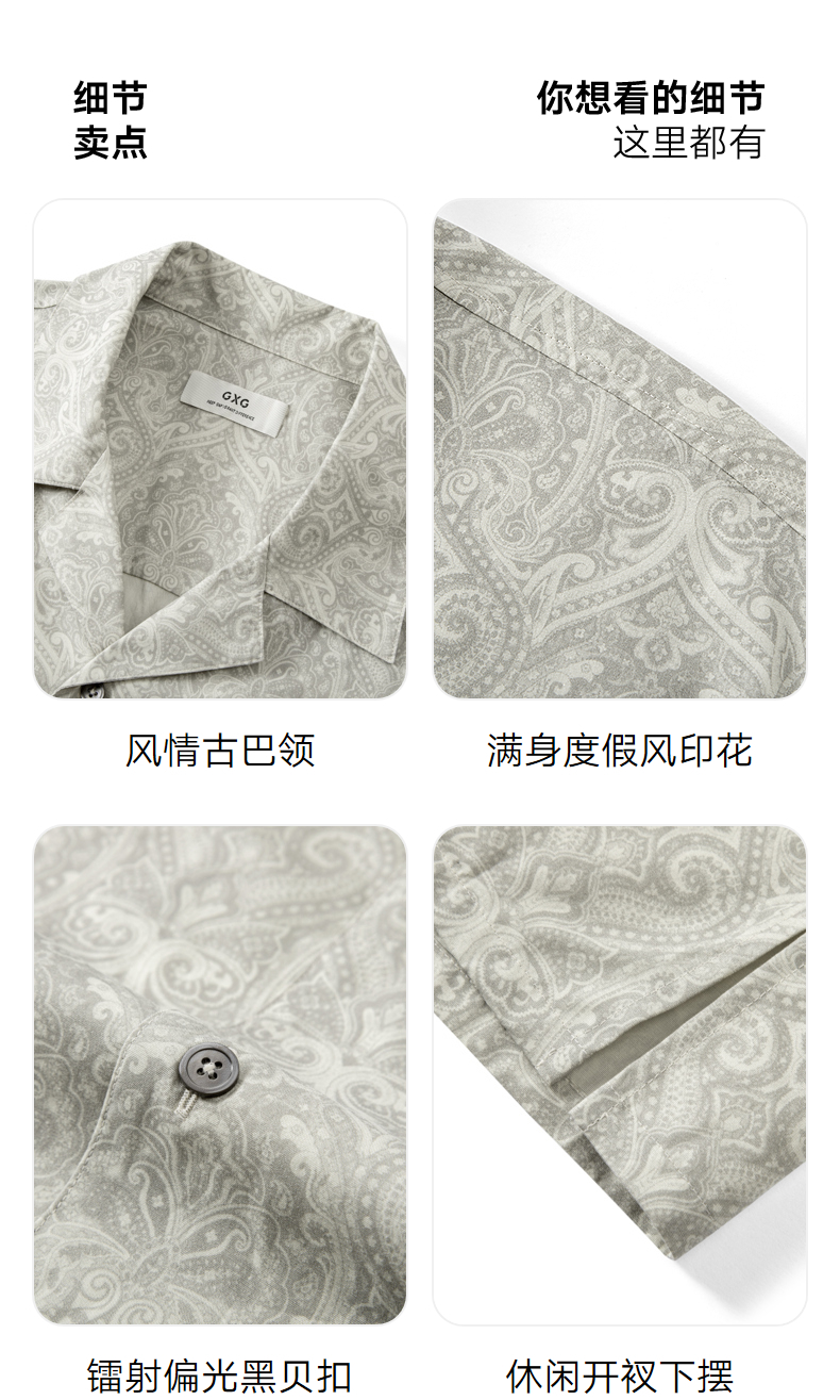 GXG男装 满印度假风衬衫古巴领短袖上衣通勤休闲男 2025夏季新品