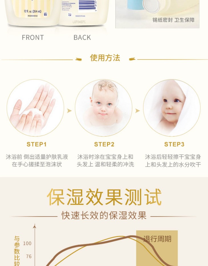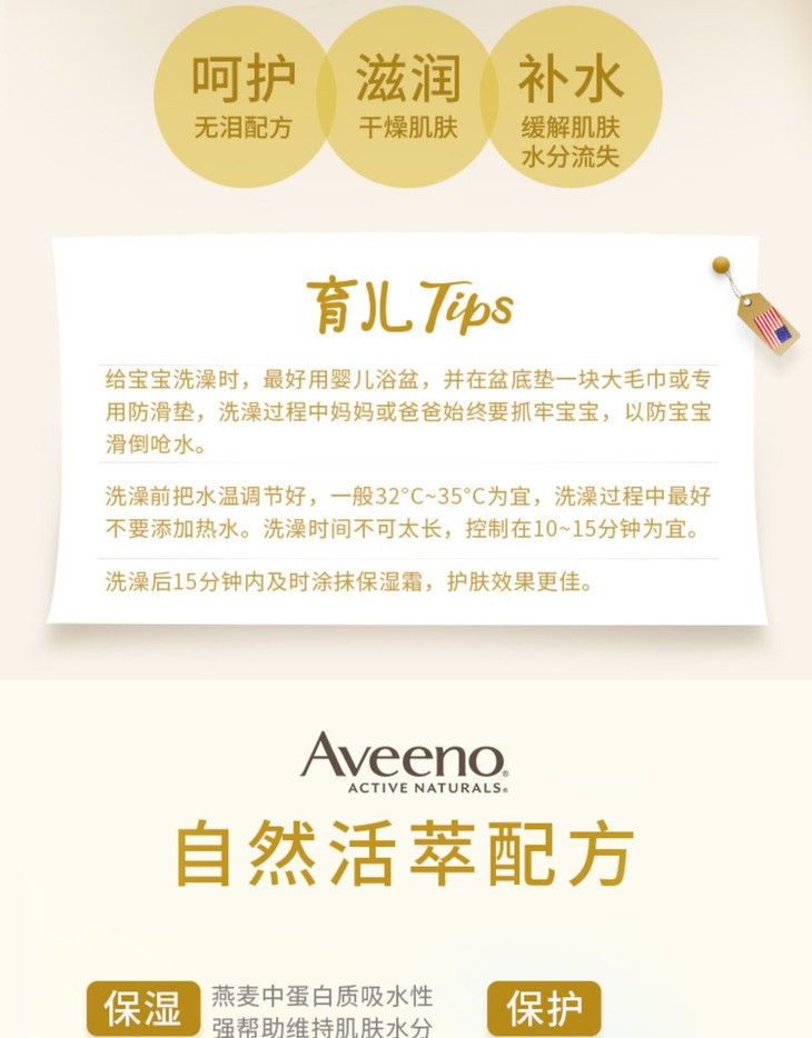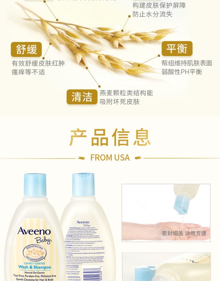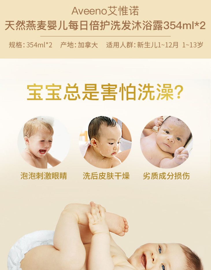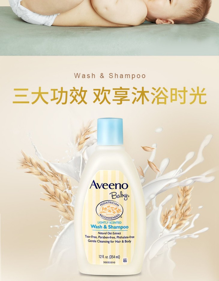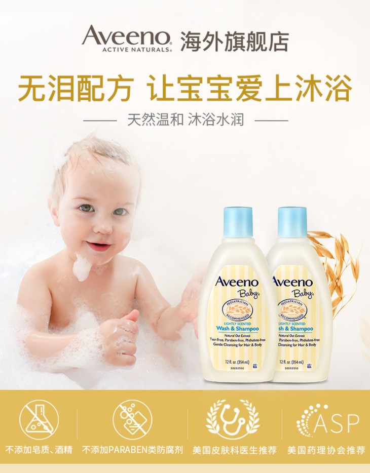 (超值)美国艾惟诺Aveeno 宝宝新生婴幼儿专用洗护正品儿童洗发水沐浴露二合一