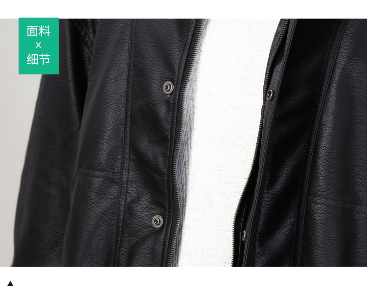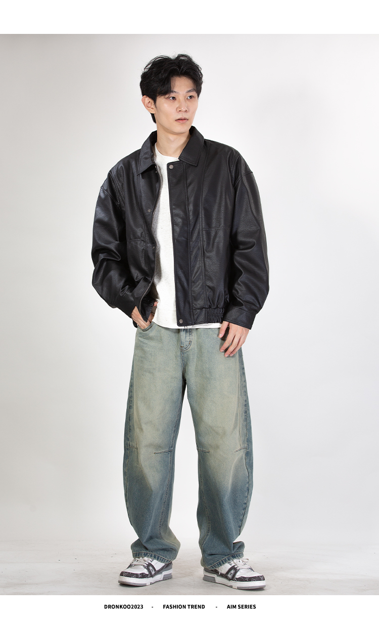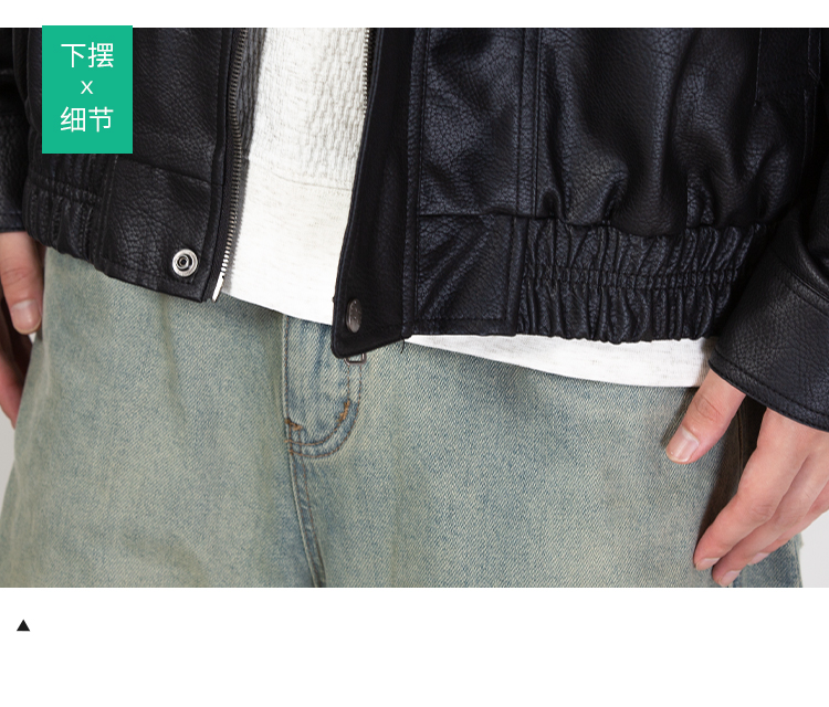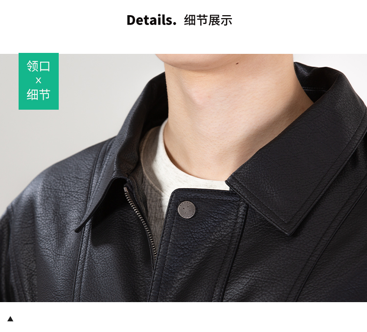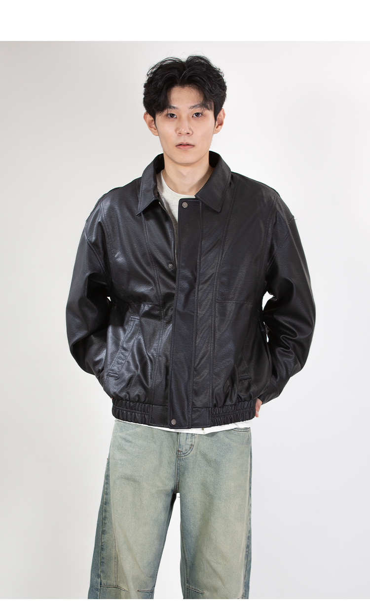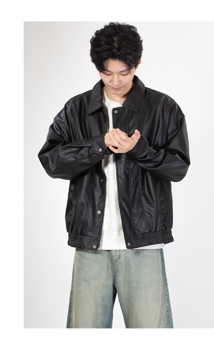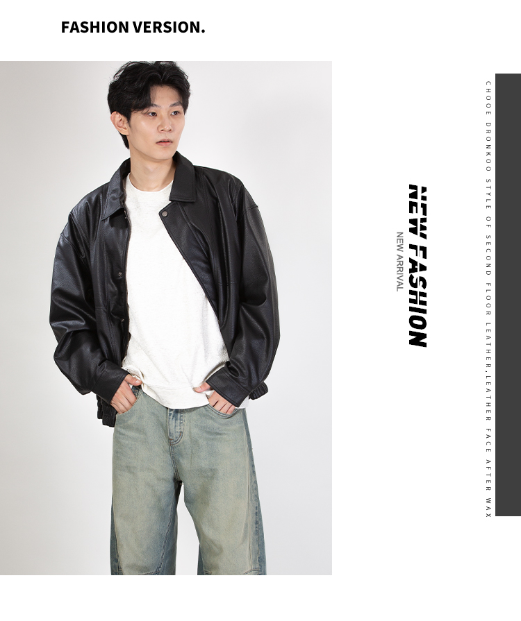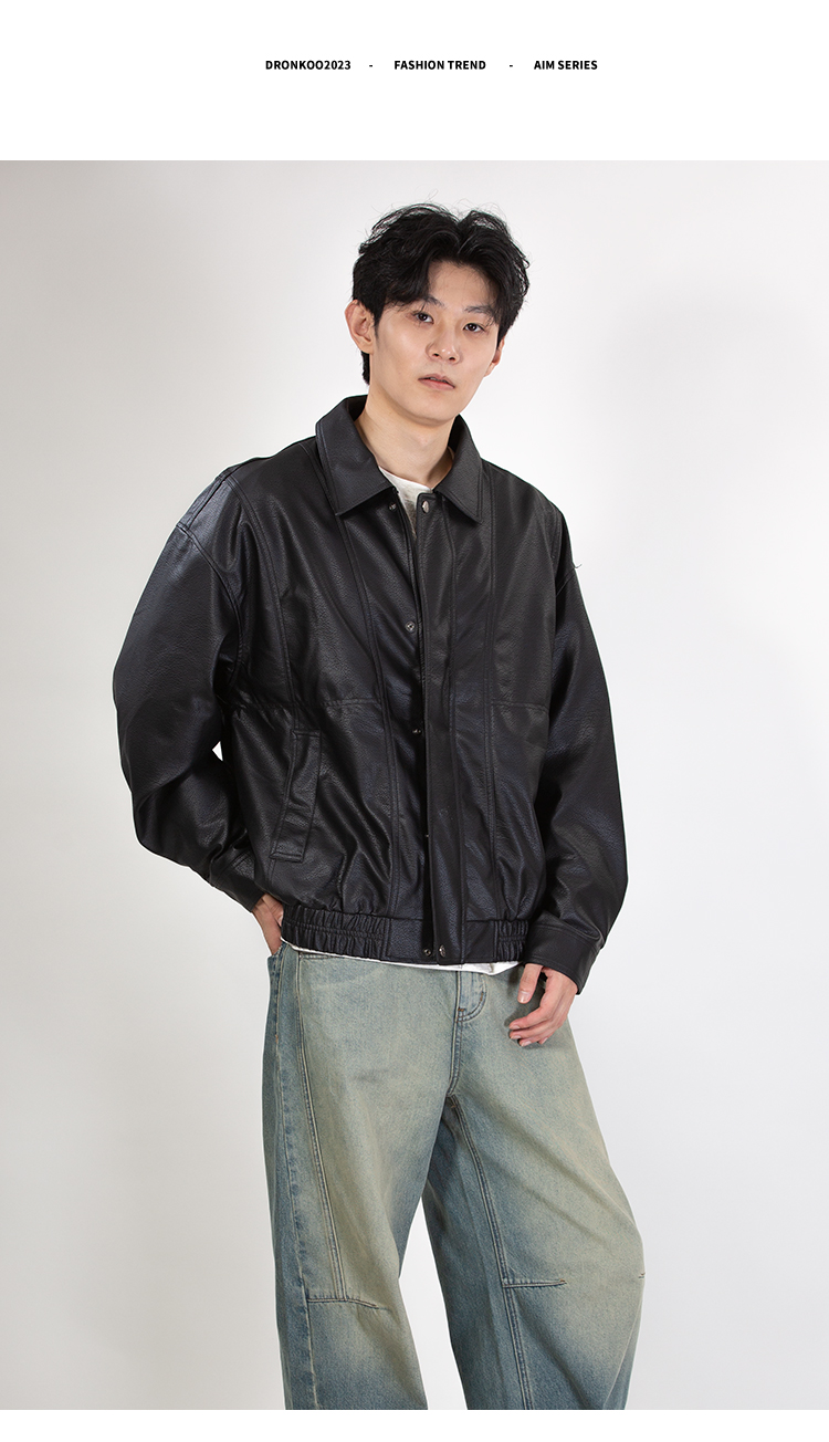 DRONKOO 2025 翻领前后破缝荔枝纹下摆橡筋微阔中厚皮衣