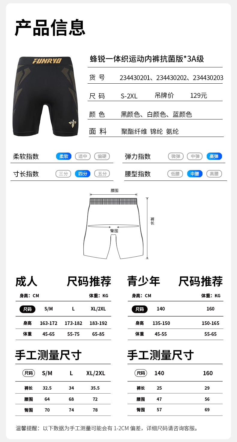 蜂锐AsOne一体织运动内裤抗菌版1.0/基础款/2.0/薄款