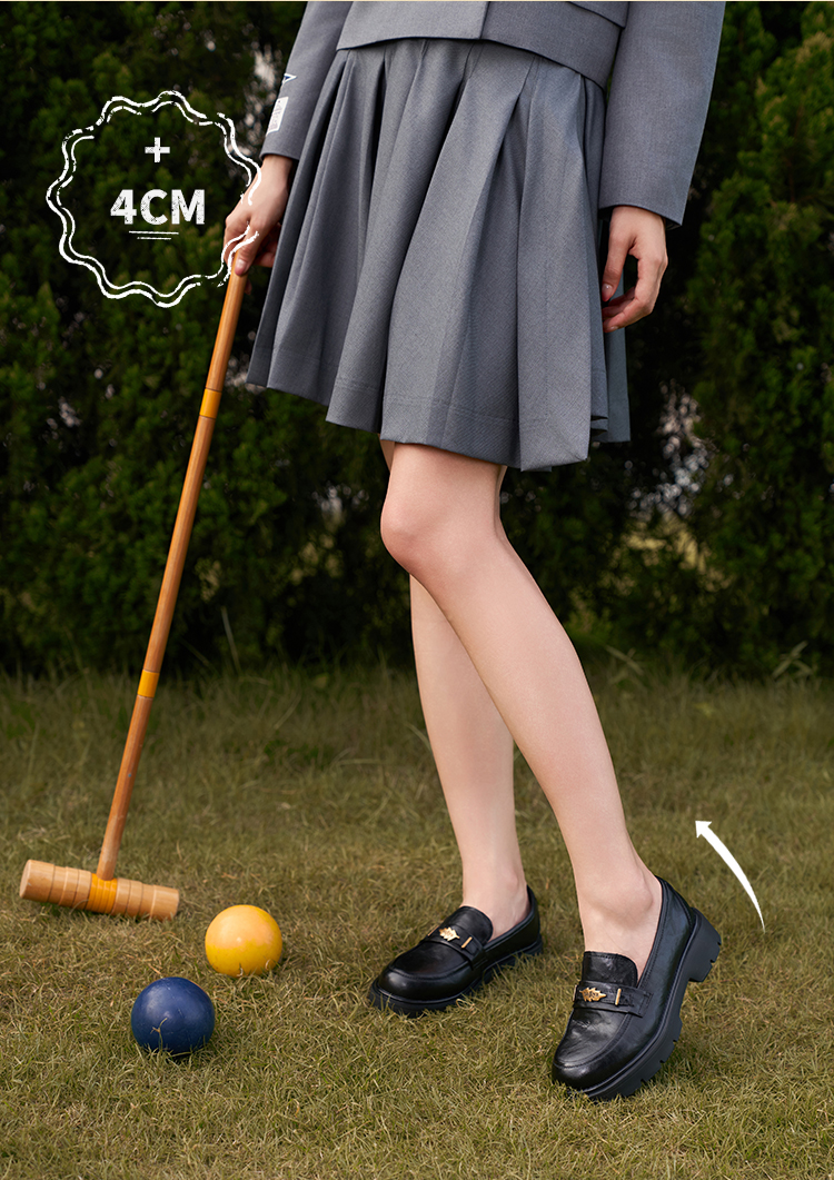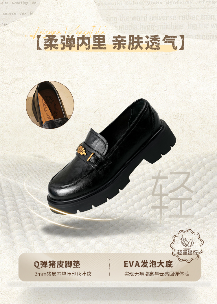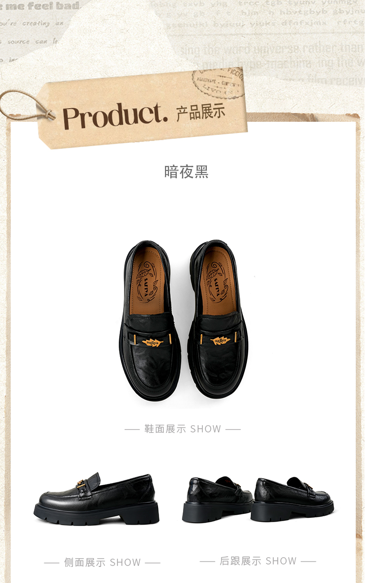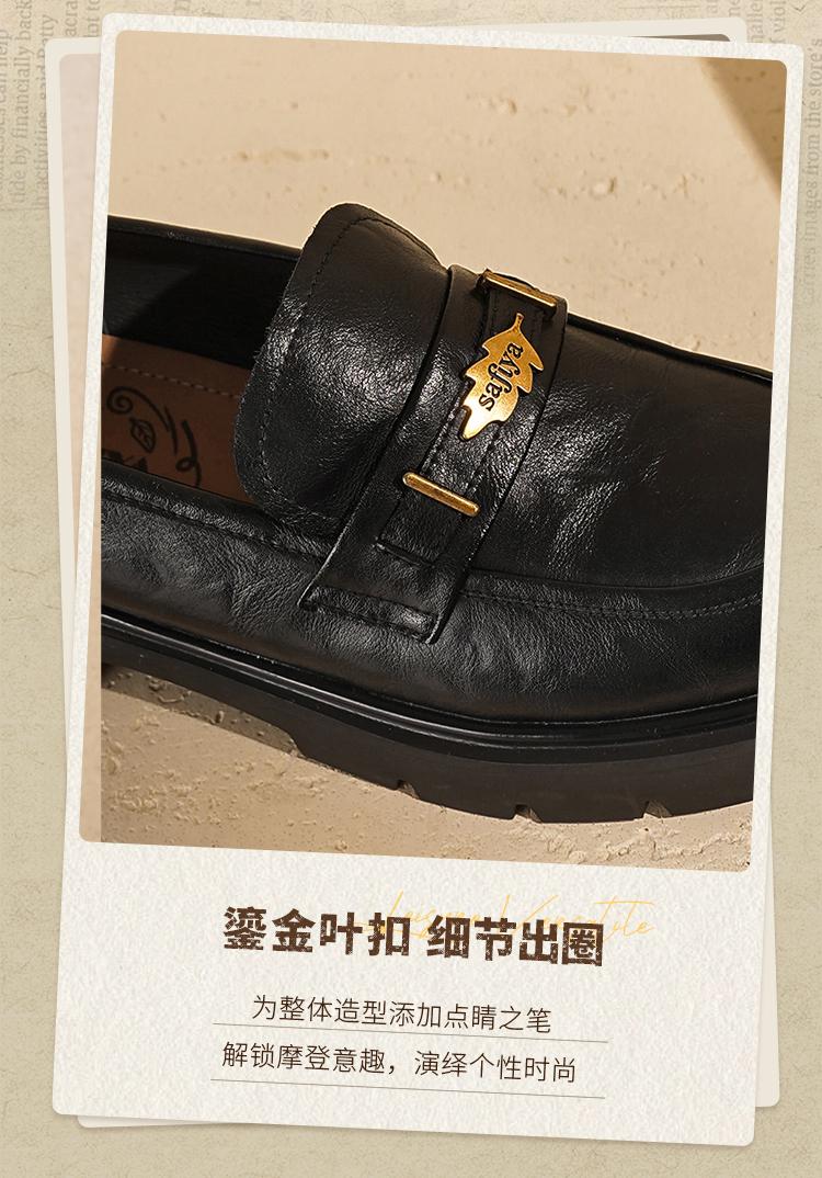 Safiya/索菲娅2025复古秋叶扣增高不累脚百搭粗跟英伦乐福鞋SFD3112114