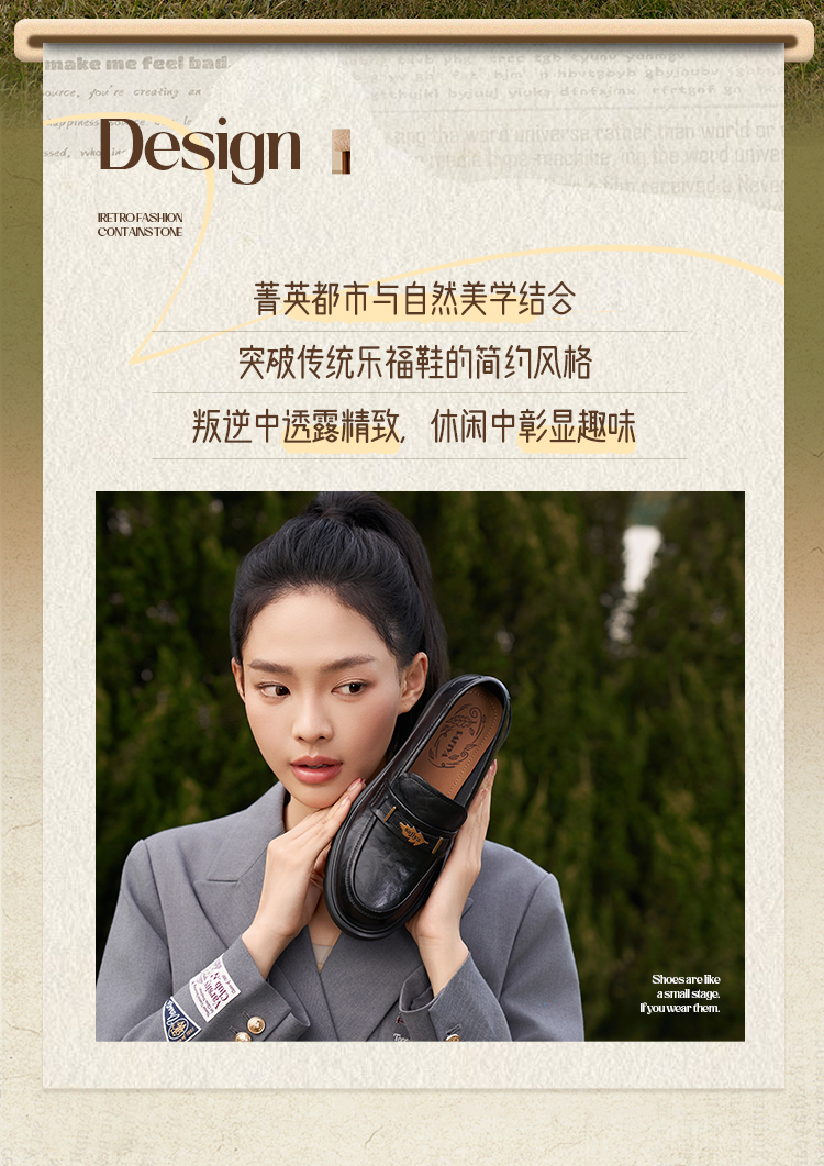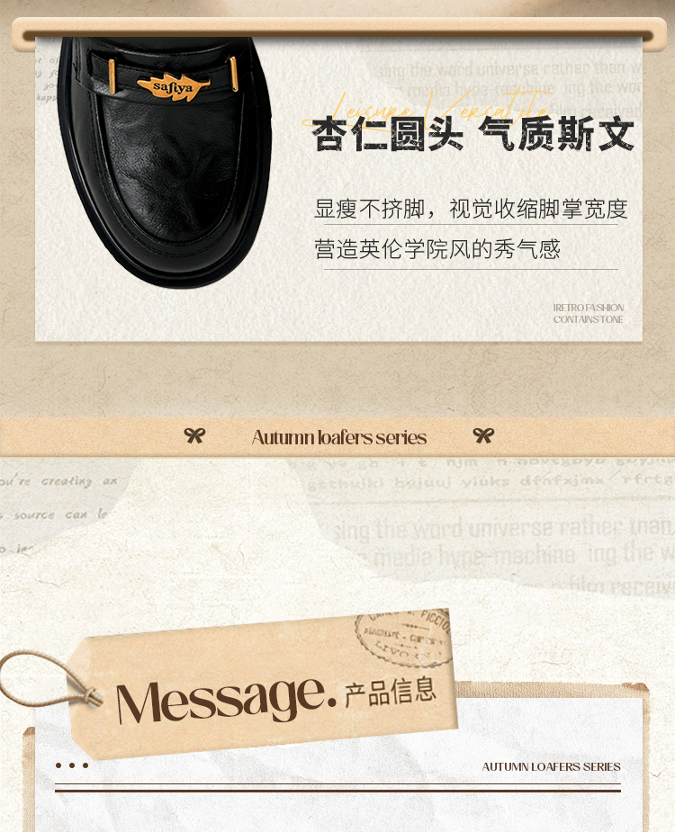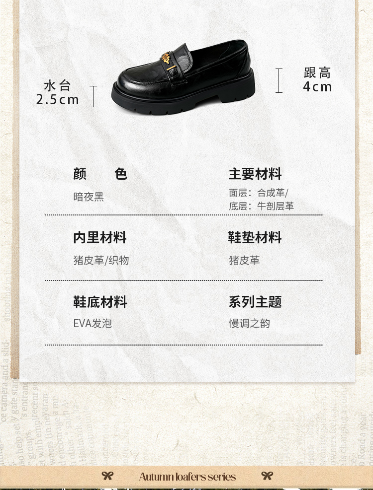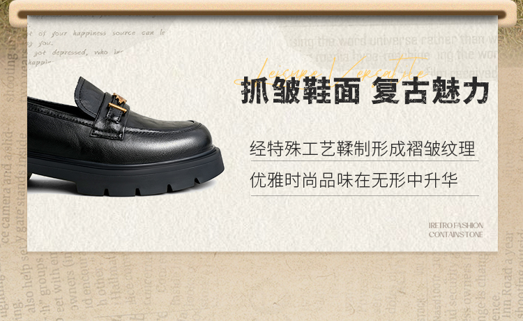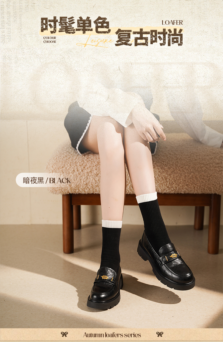 Safiya/索菲娅2025复古秋叶扣增高不累脚百搭粗跟英伦乐福鞋SFD3112114