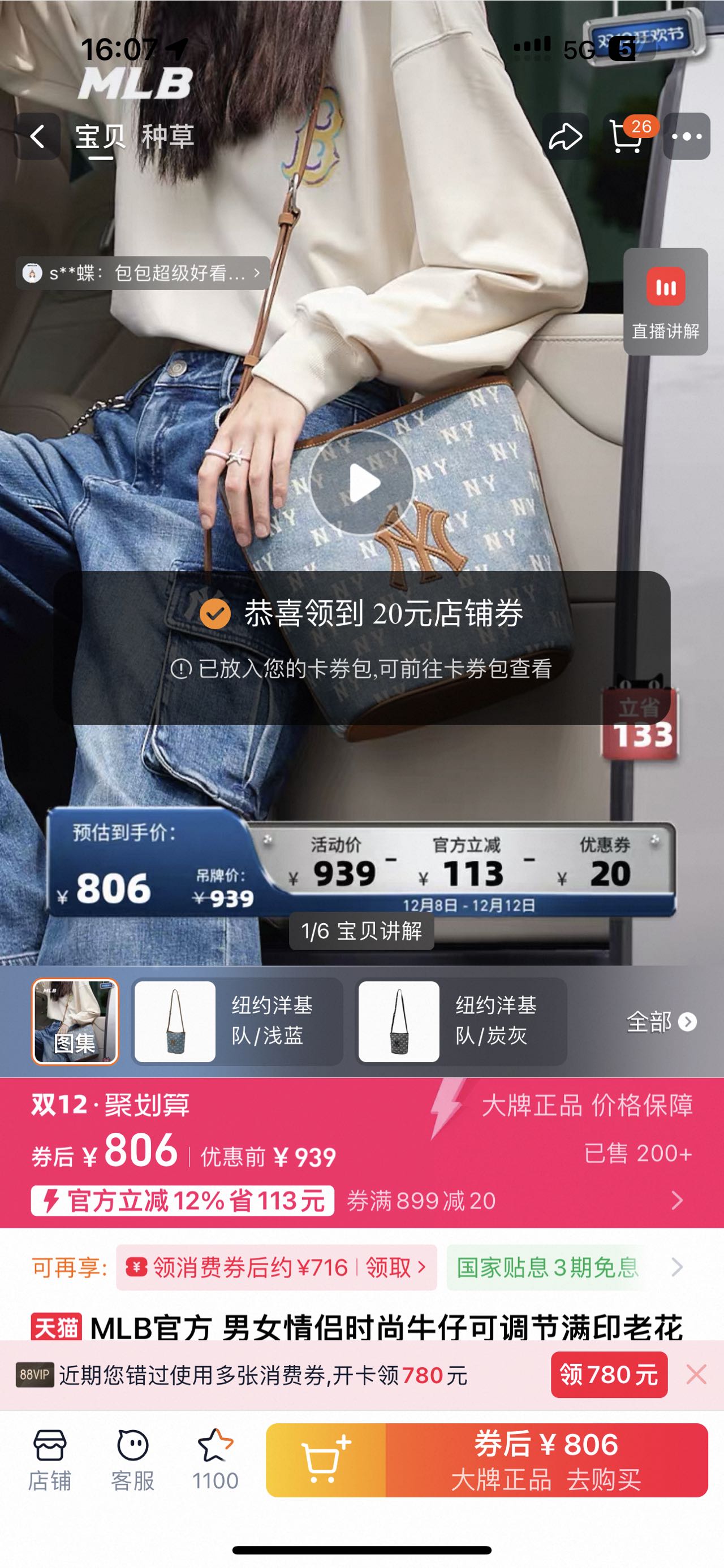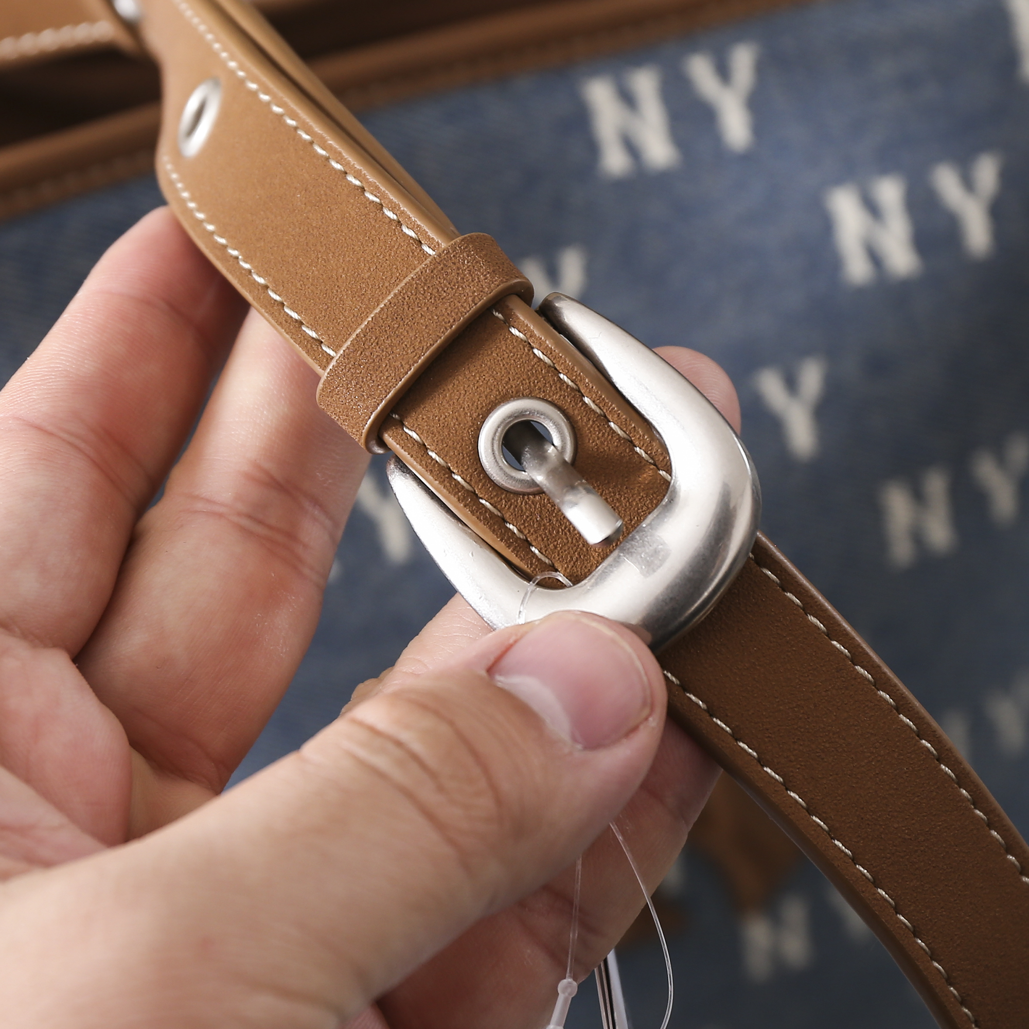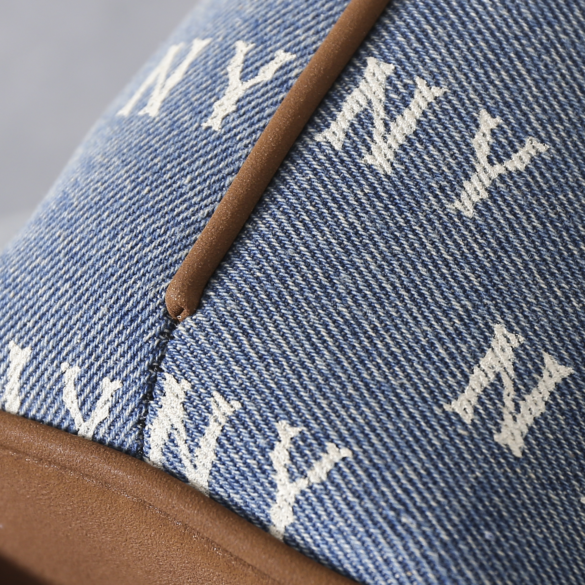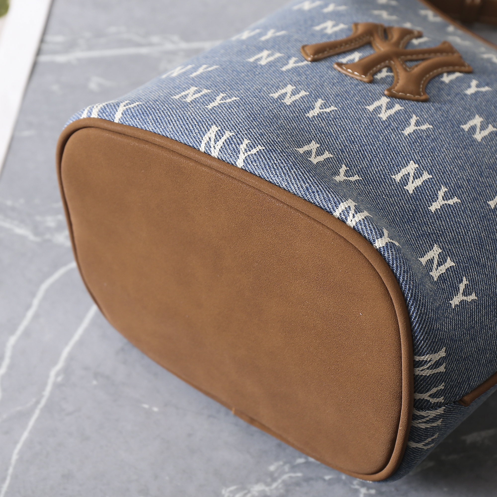 MLB复古牛仔老花大水桶包 情侣斜跨手提包25FW
