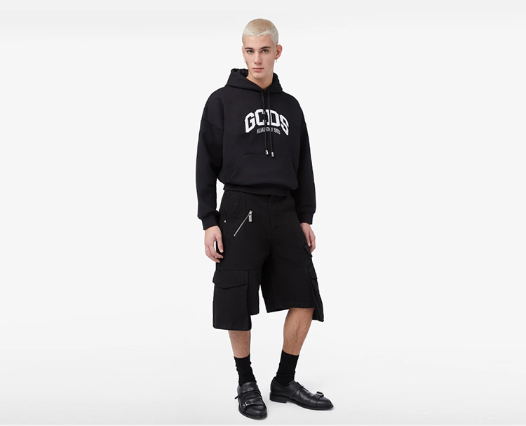 GCDS 男士字母徽标贴花棉质休闲短裤 黑色 A1CM3107TD399