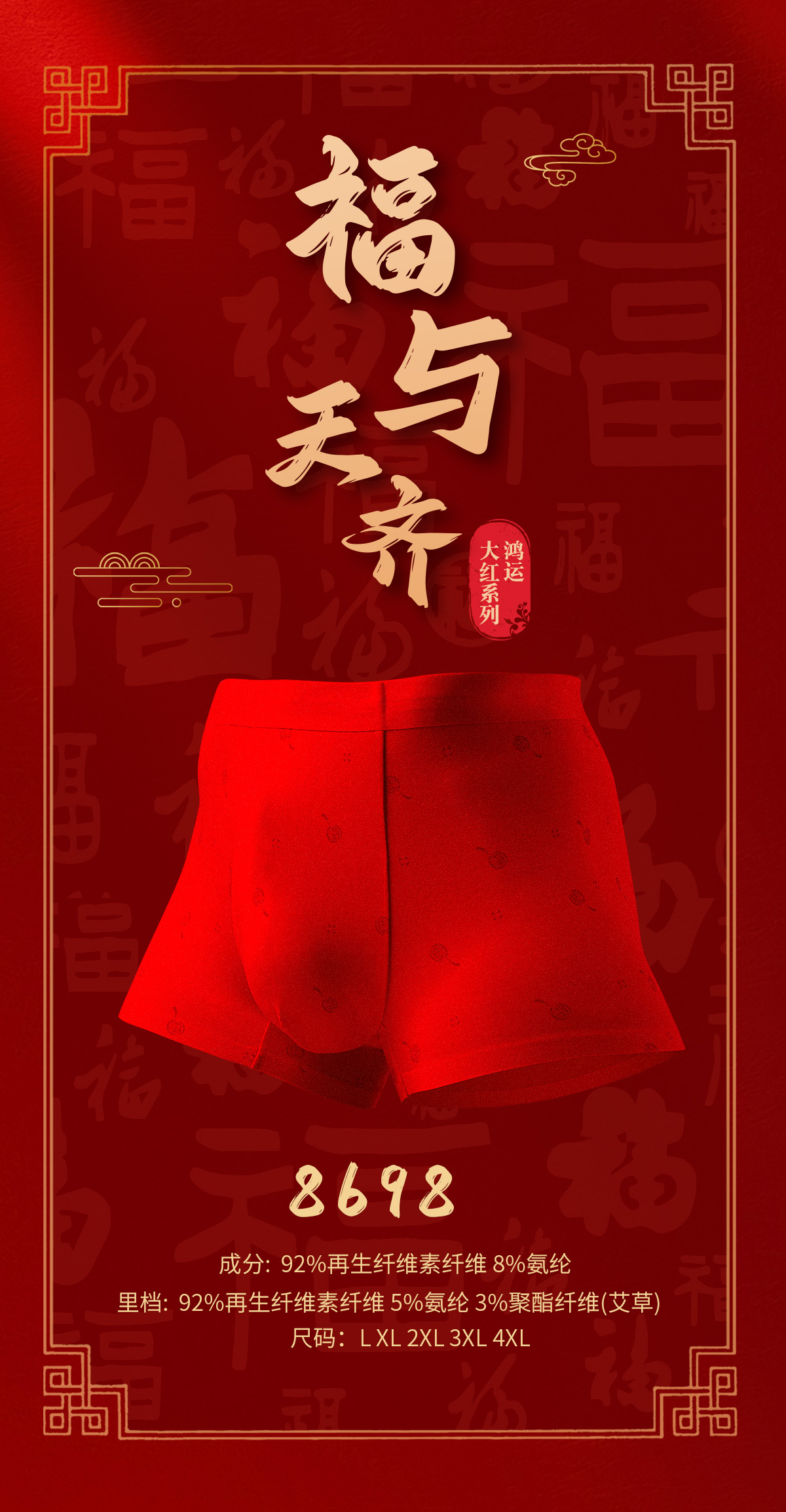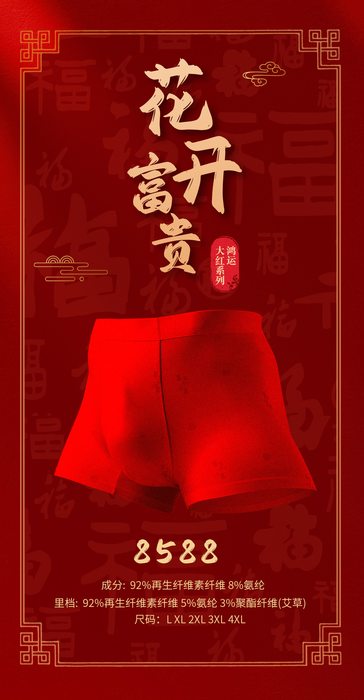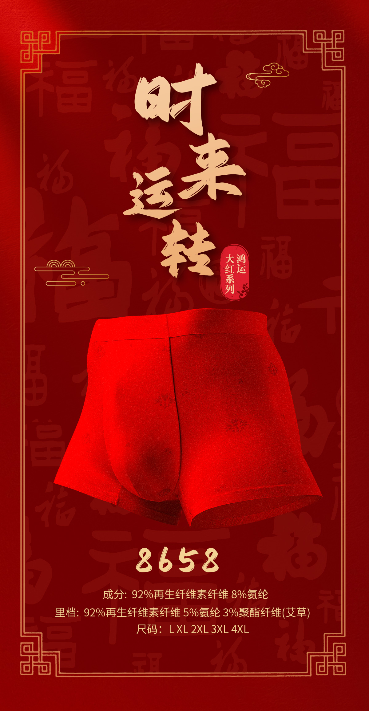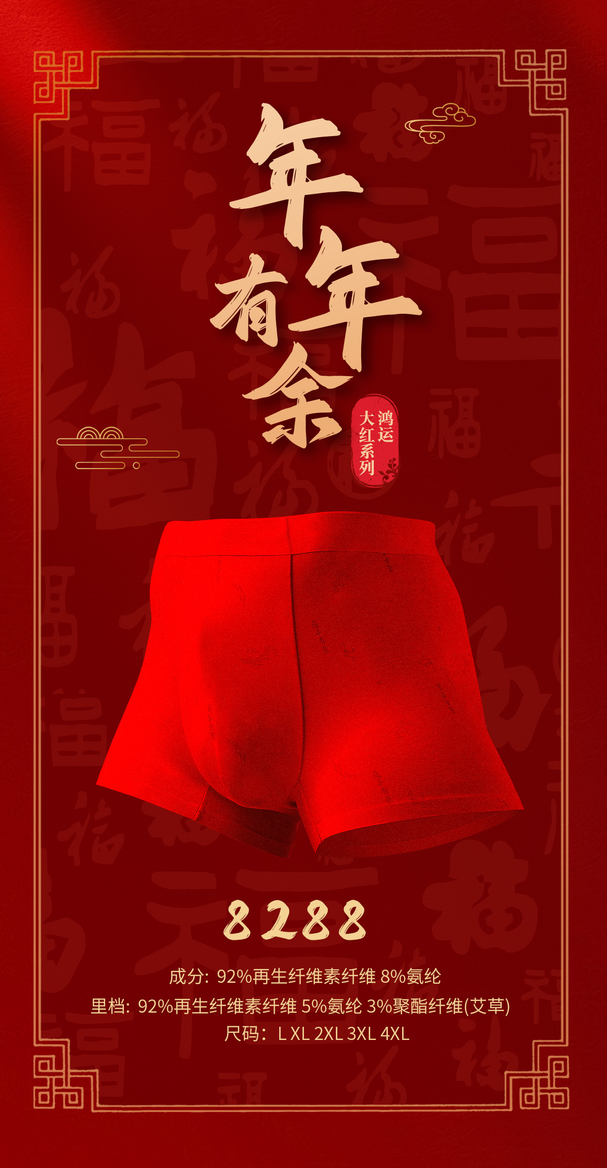 男士大红印花无痕内裤舒适透气莫代尔面料三条礼盒装8588/8288/8658/8698