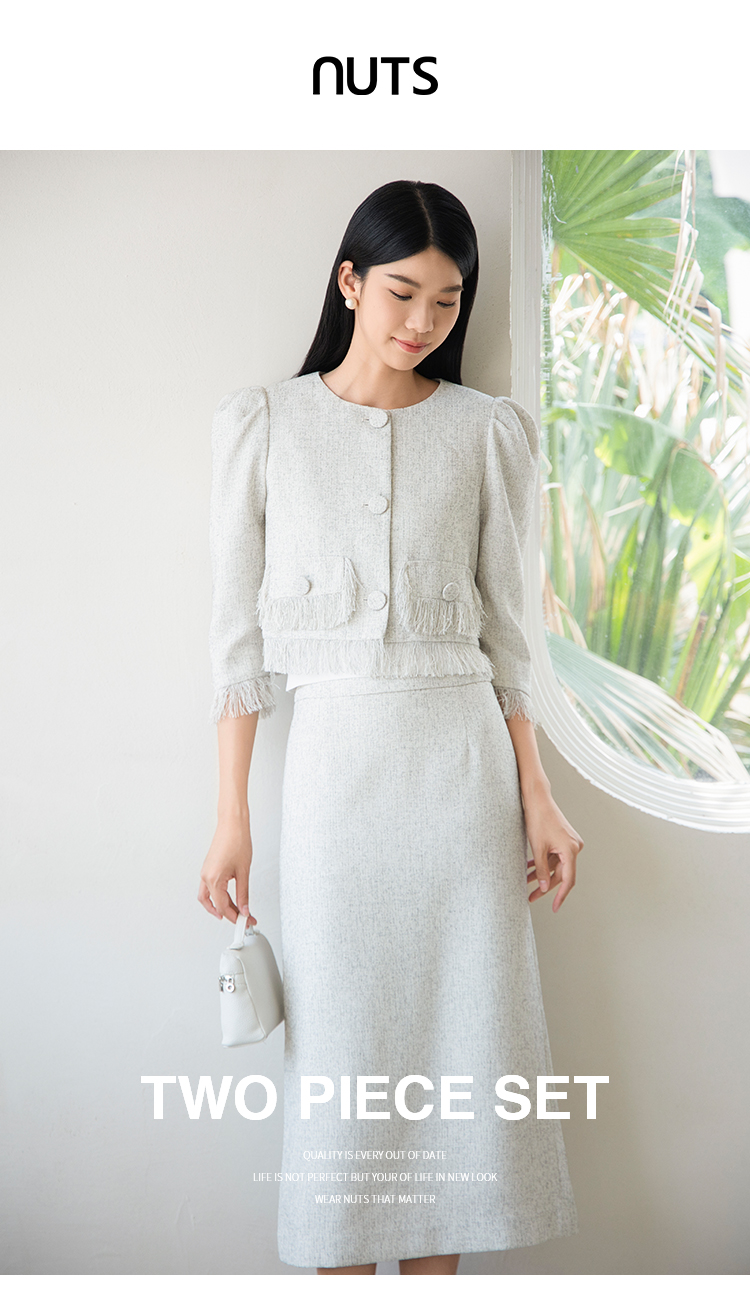 NUTS2023秋季新款时尚气质小香风短外套+半身裙两件套装4381401A1