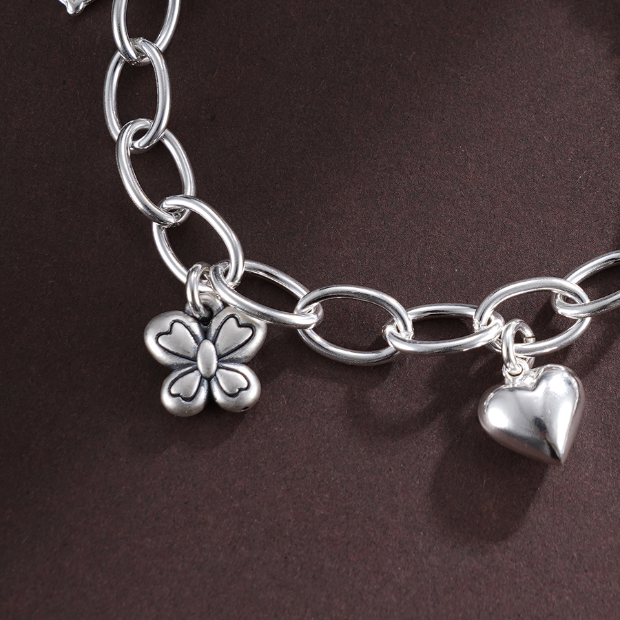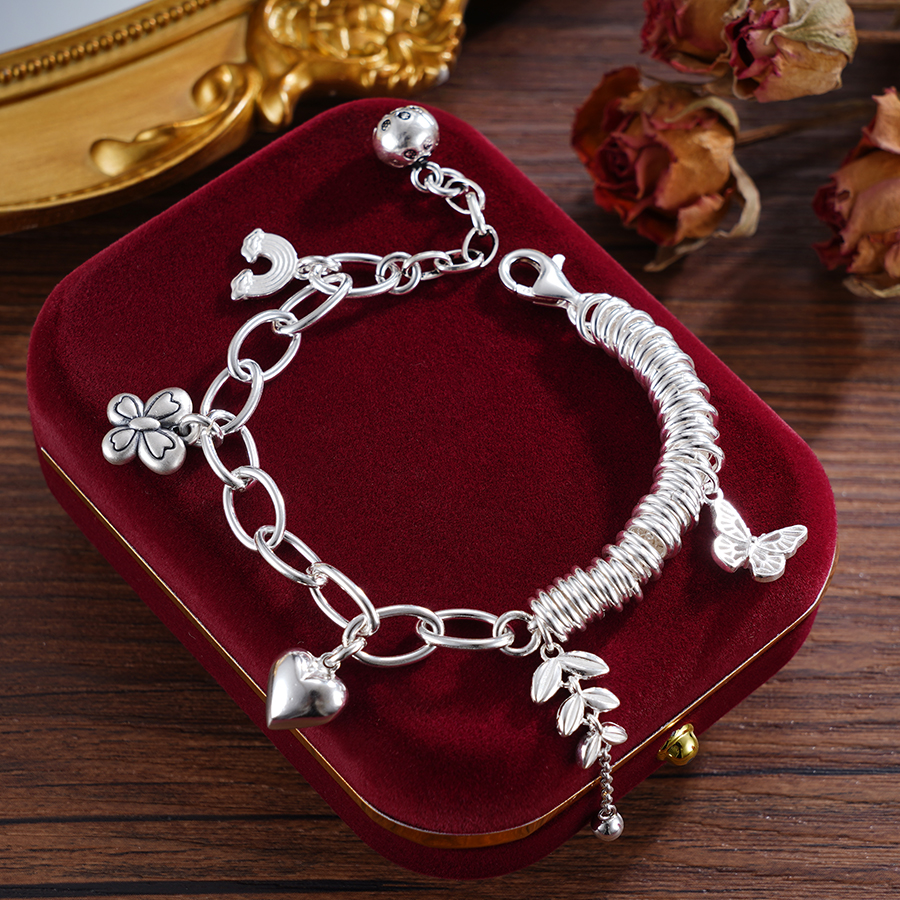 子佩集S925银【心之恋语】手串【TSB0001-49】纯银手链钱串爱心蝴蝶麦穗钱串腰缠万贯盘缠盘缠2503