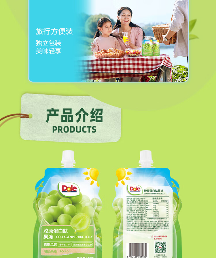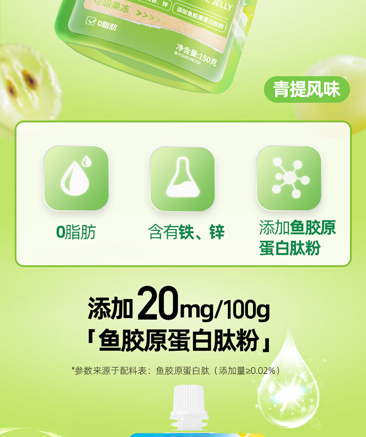 【分仓直发包邮】都乐胶原蛋白肽果冻(青提风味)150g*8袋