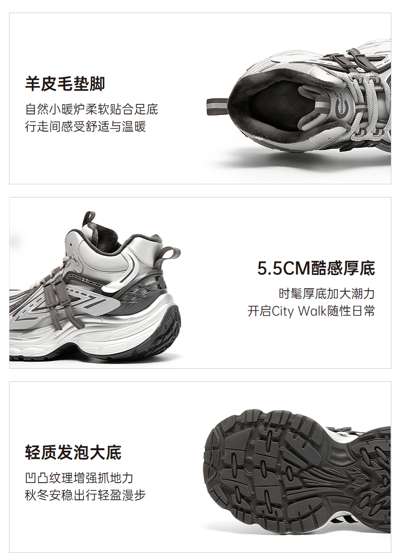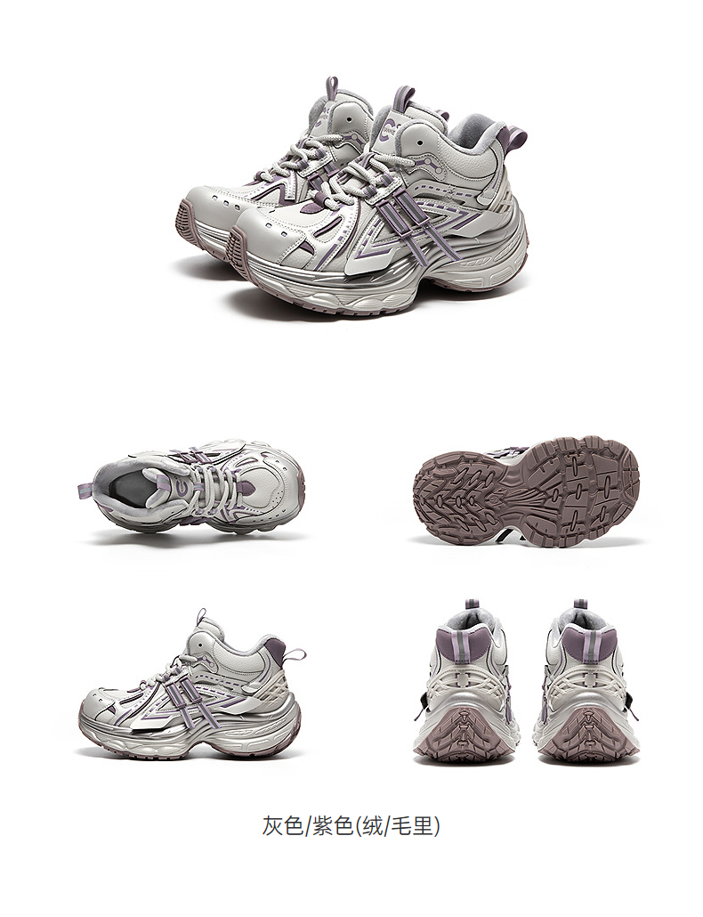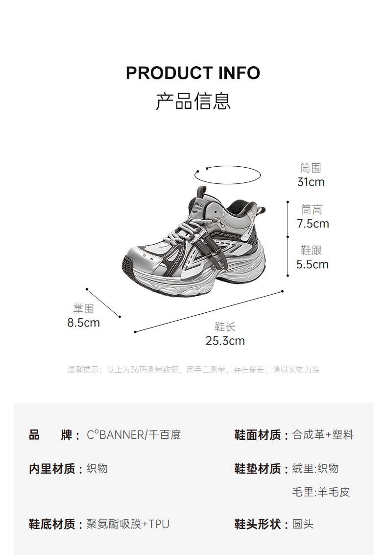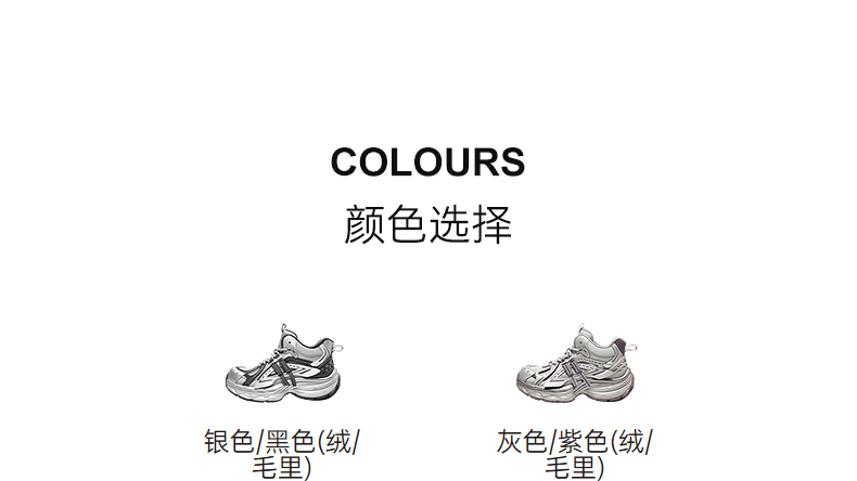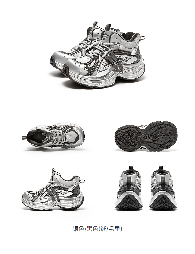 千百度银色厚底老爹鞋女2025冬季新款加绒保暖增高时尚运动休闲鞋A25660913
