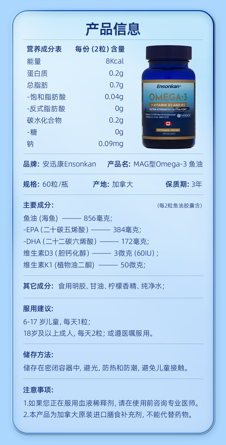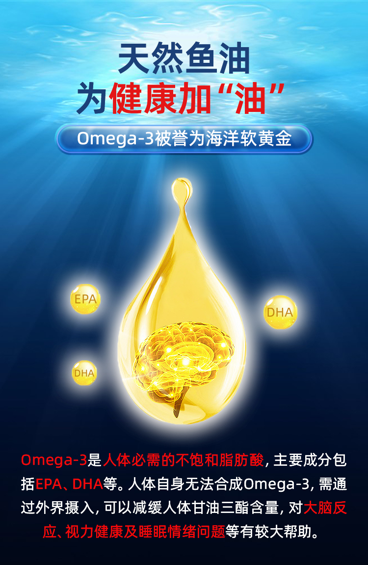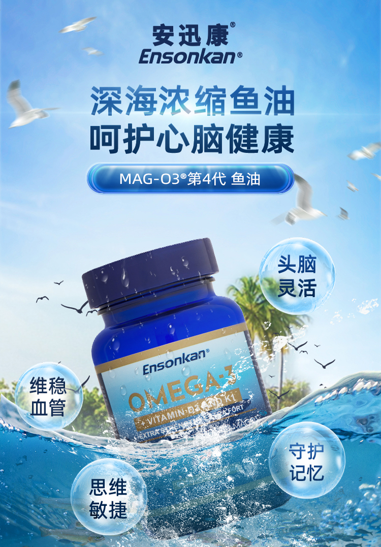 Ensonkan安迅康 深海鱼油软胶囊高纯度omega3含DHA EPA维生素D中老年呵护心眼脑血管