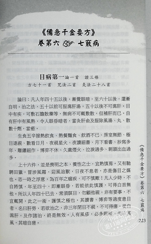 《備急千金要方》卷第六 七竅病
