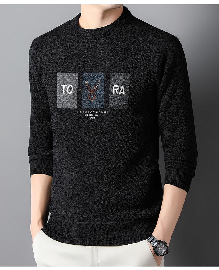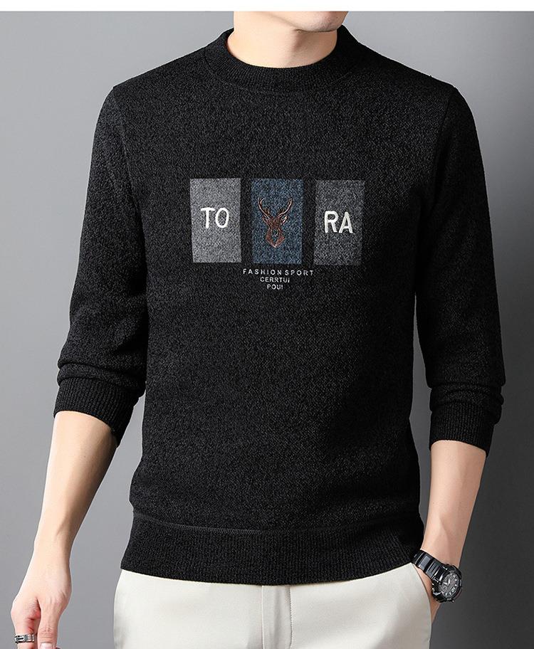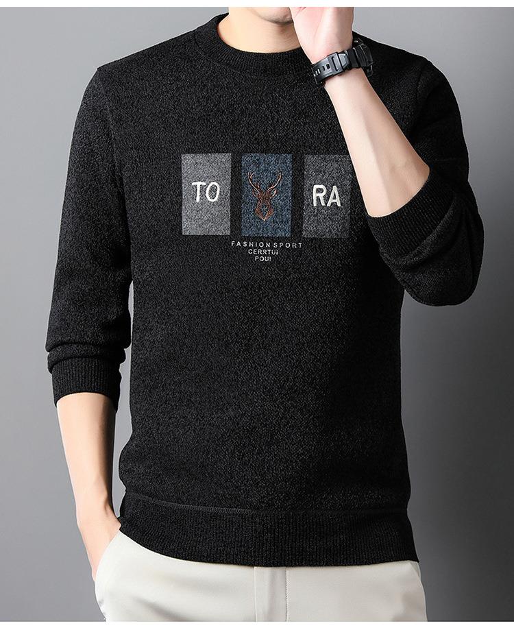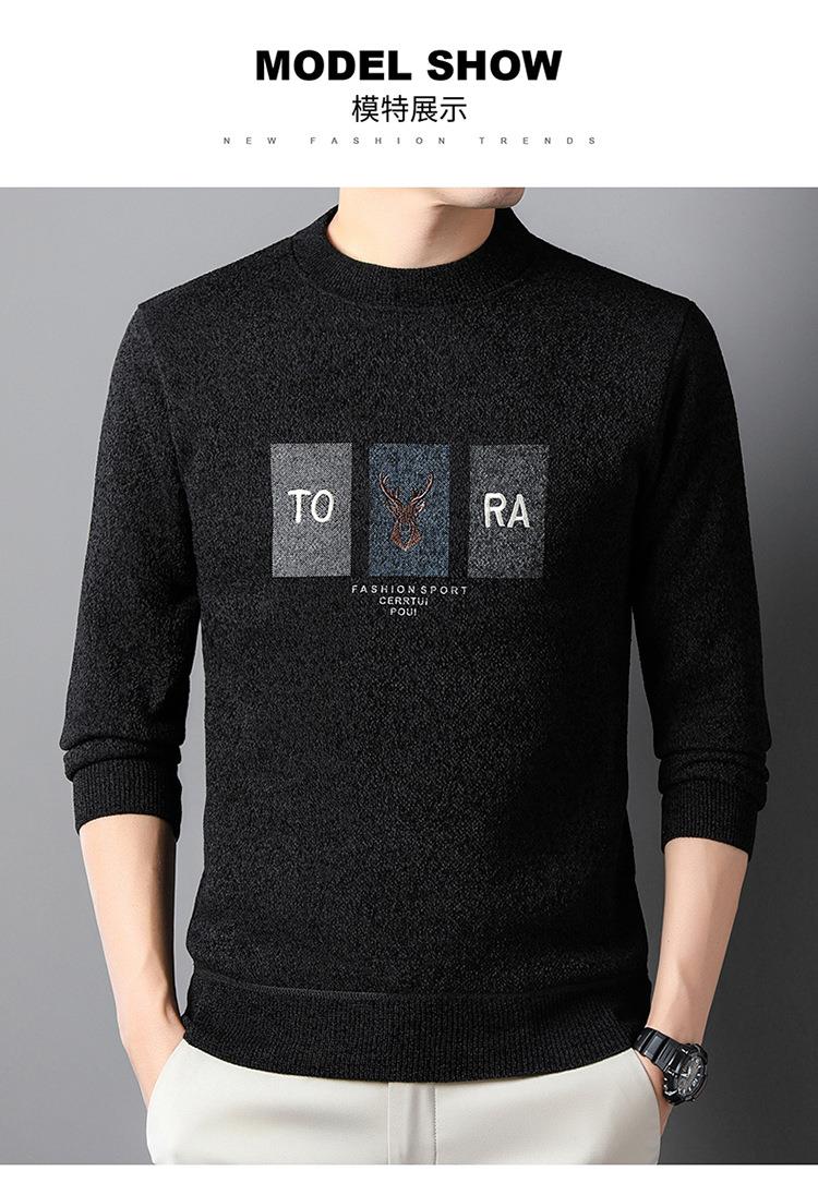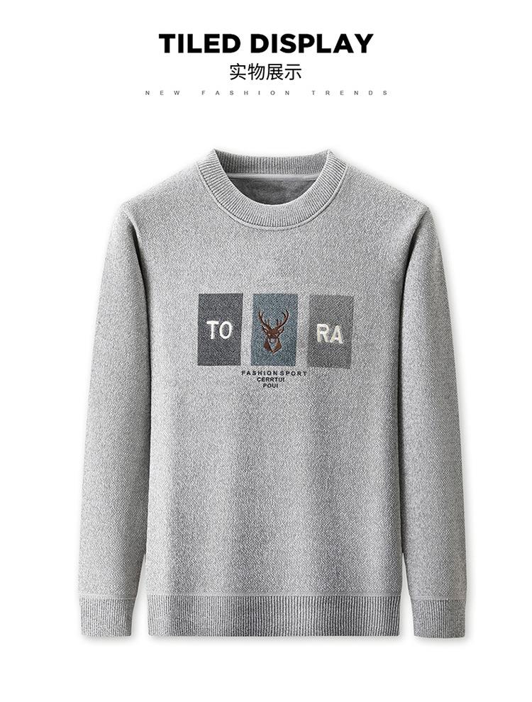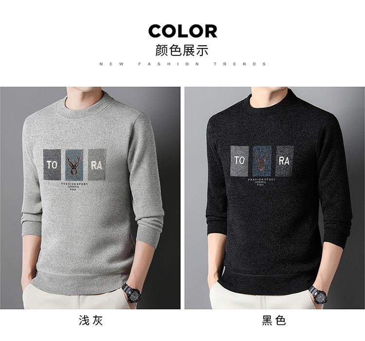 雪貂加绒加厚毛衣男士秋冬季新款潮流百搭休闲保暖打底针织衫上衣