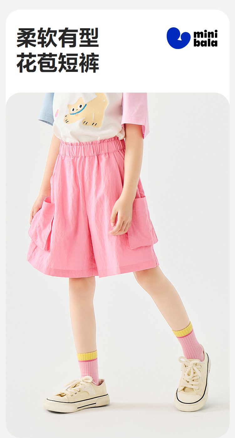 迷你巴拉女童短裤夏装户外潮酷宽松A型花苞裤凉感儿童裤子