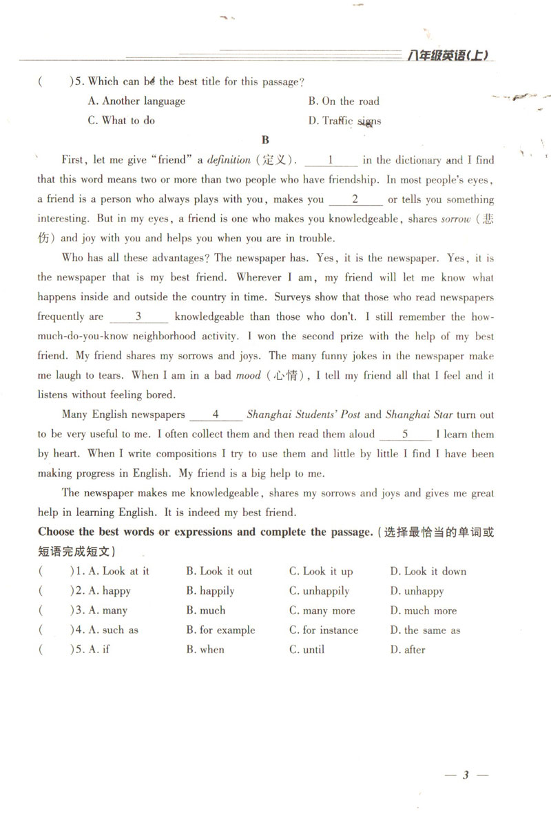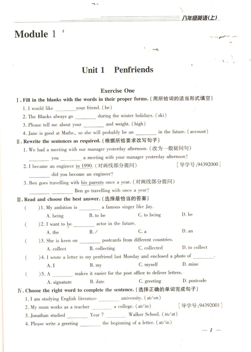 钟书金牌教辅 金牌教练 英语 8年级上/八年级上 英语 上册 N版 第一学期