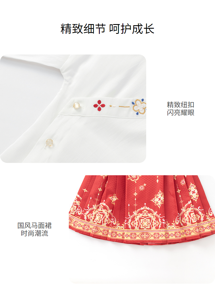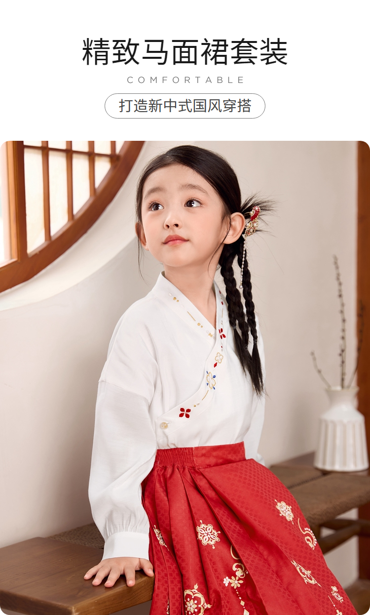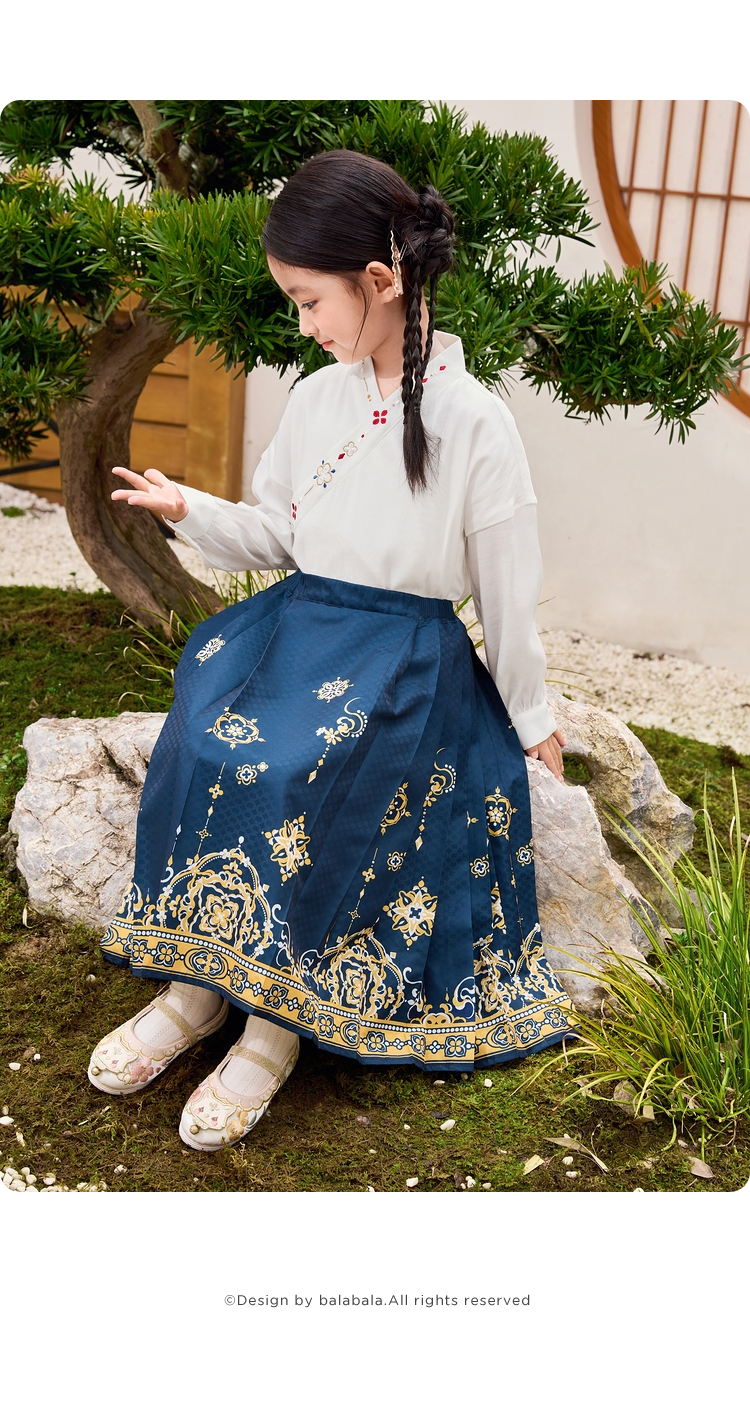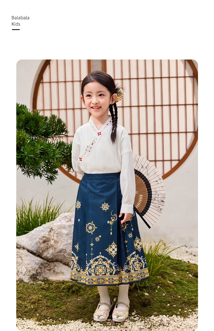 巴拉巴拉女童套装儿童长袖衣服秋季新款时尚国风马面裙两件套