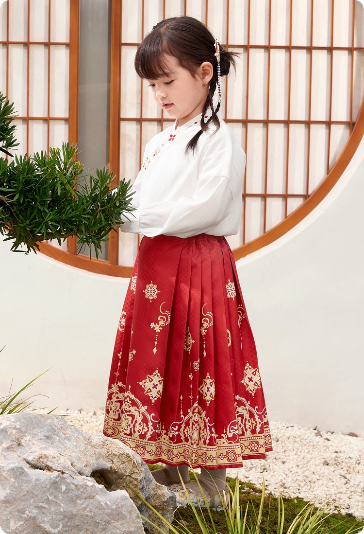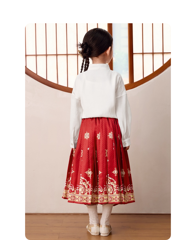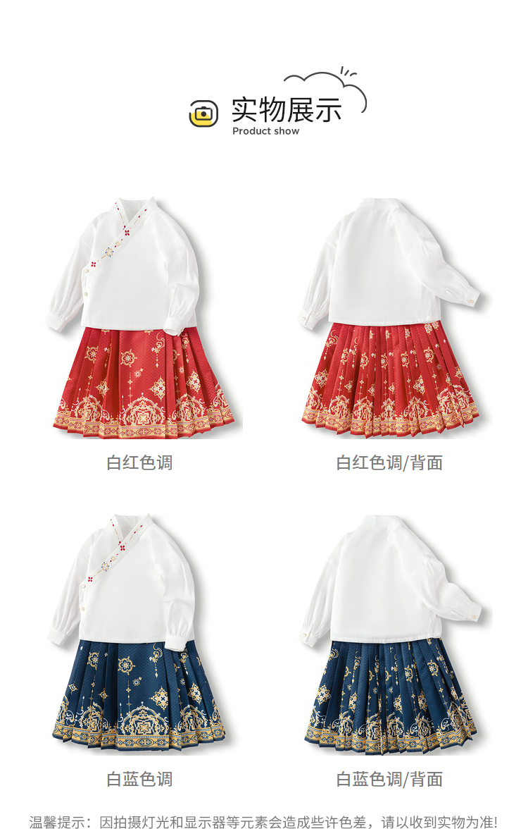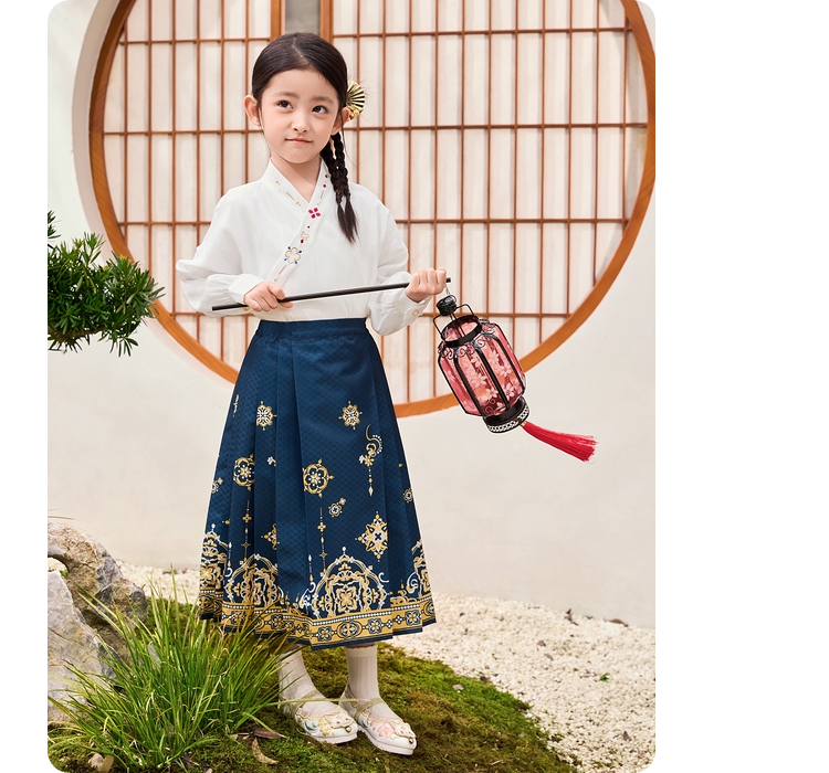 巴拉巴拉女童套装儿童长袖衣服秋季新款时尚国风马面裙两件套