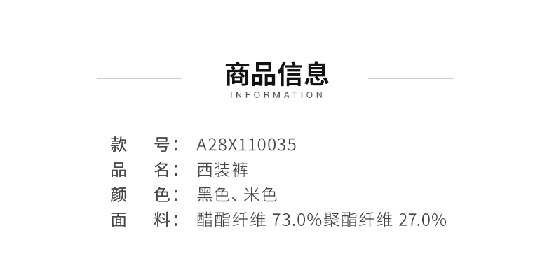 【积分兑换】阿菁娜时尚百搭西装裤子A28X110035