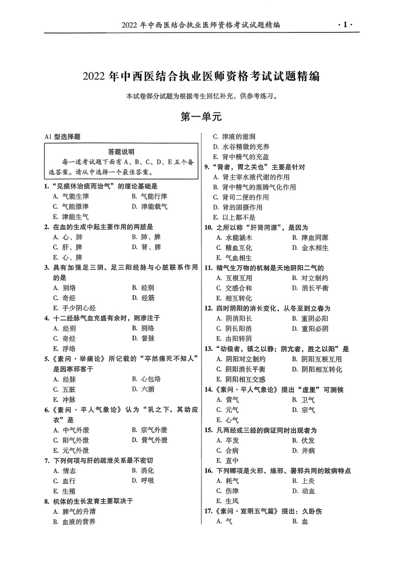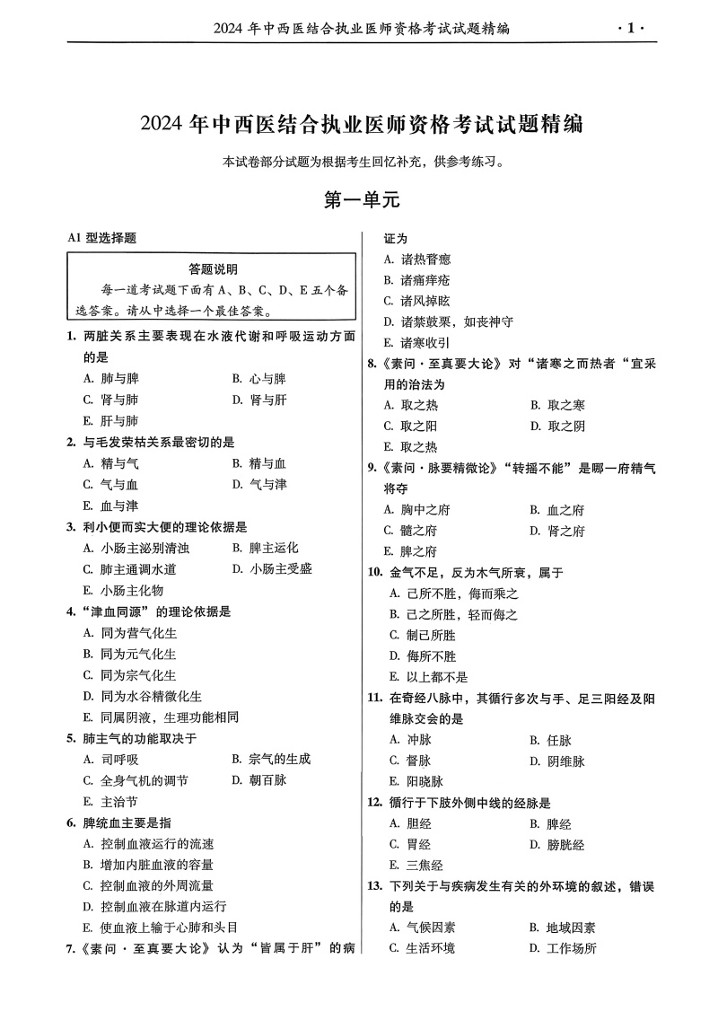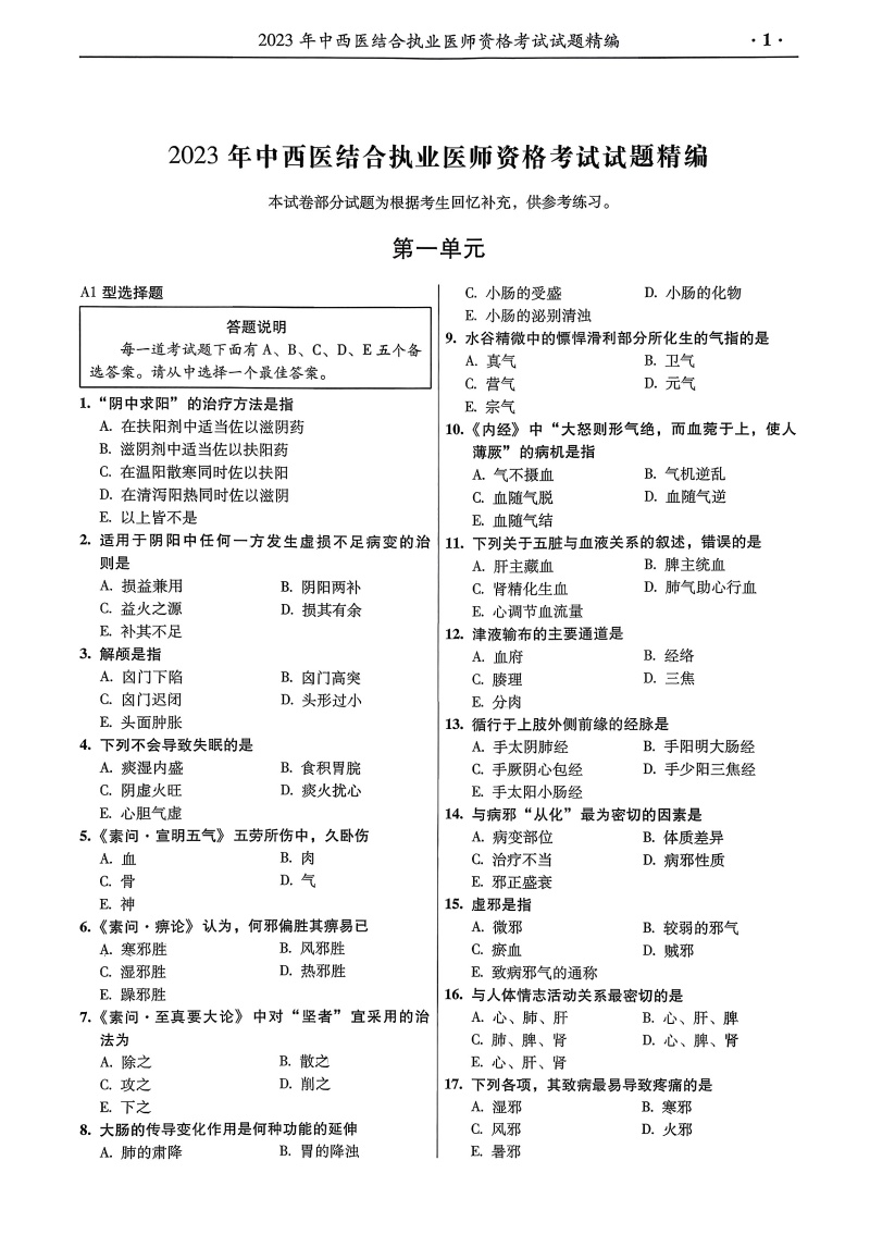 书名:2025中西医结合执业医师资格考试 历年试题与解析