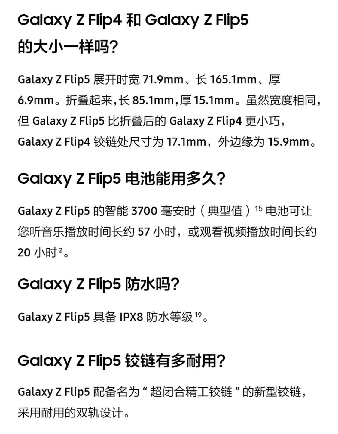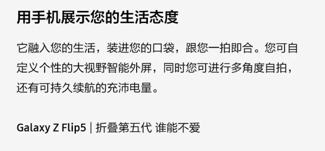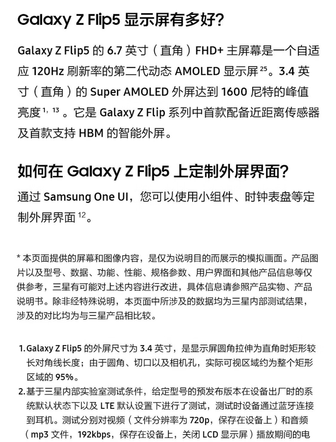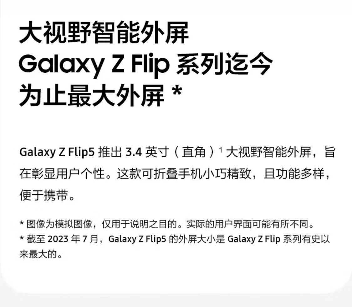 三星 Galaxy Z Flip5 (SM-F7310) 掌心折叠 折叠手机