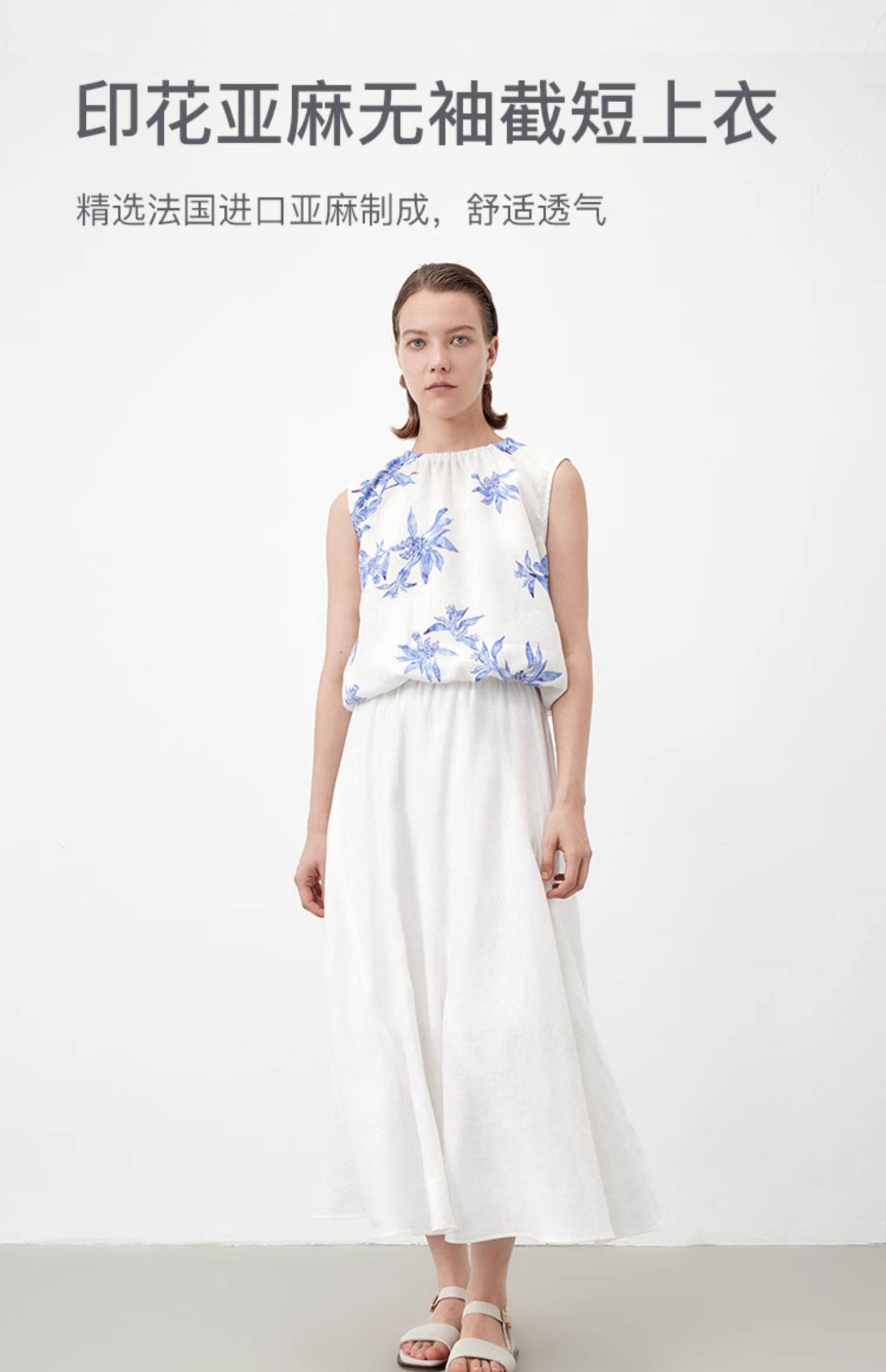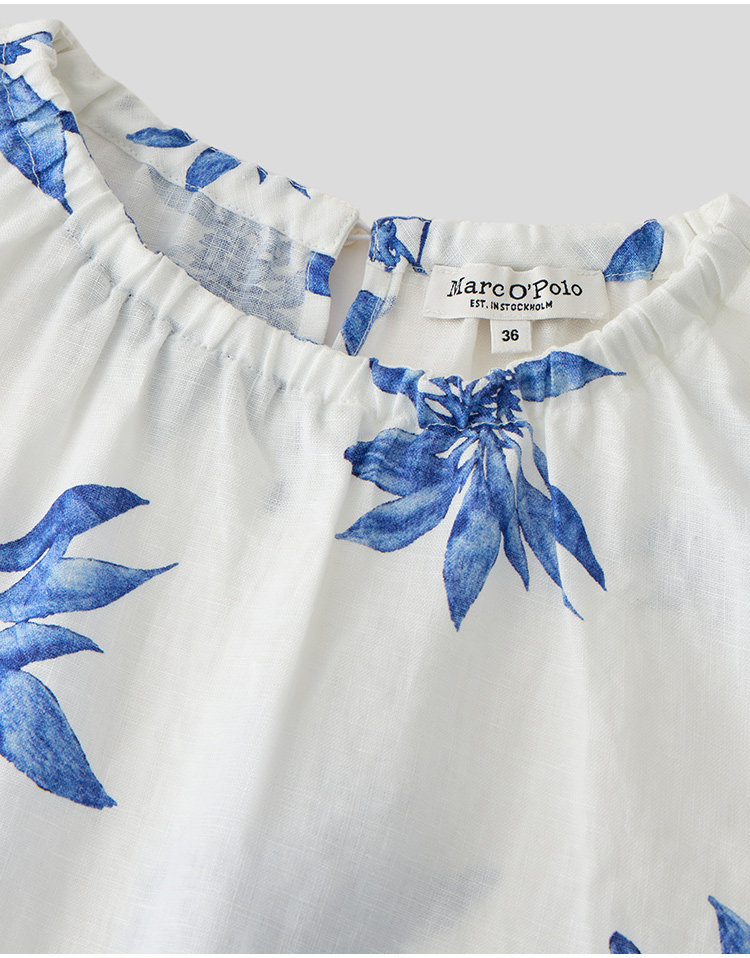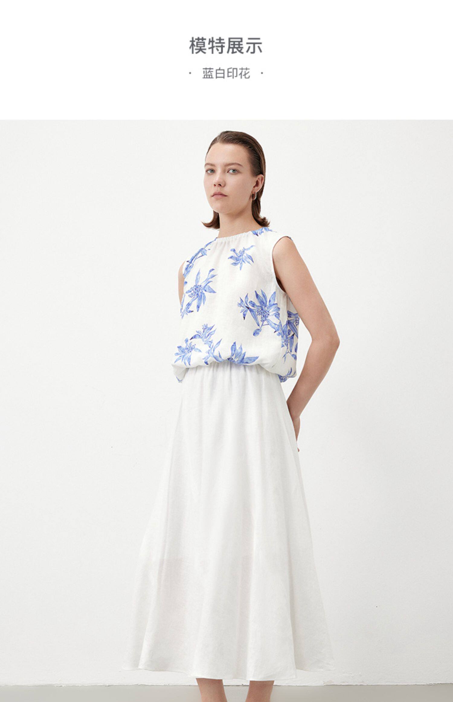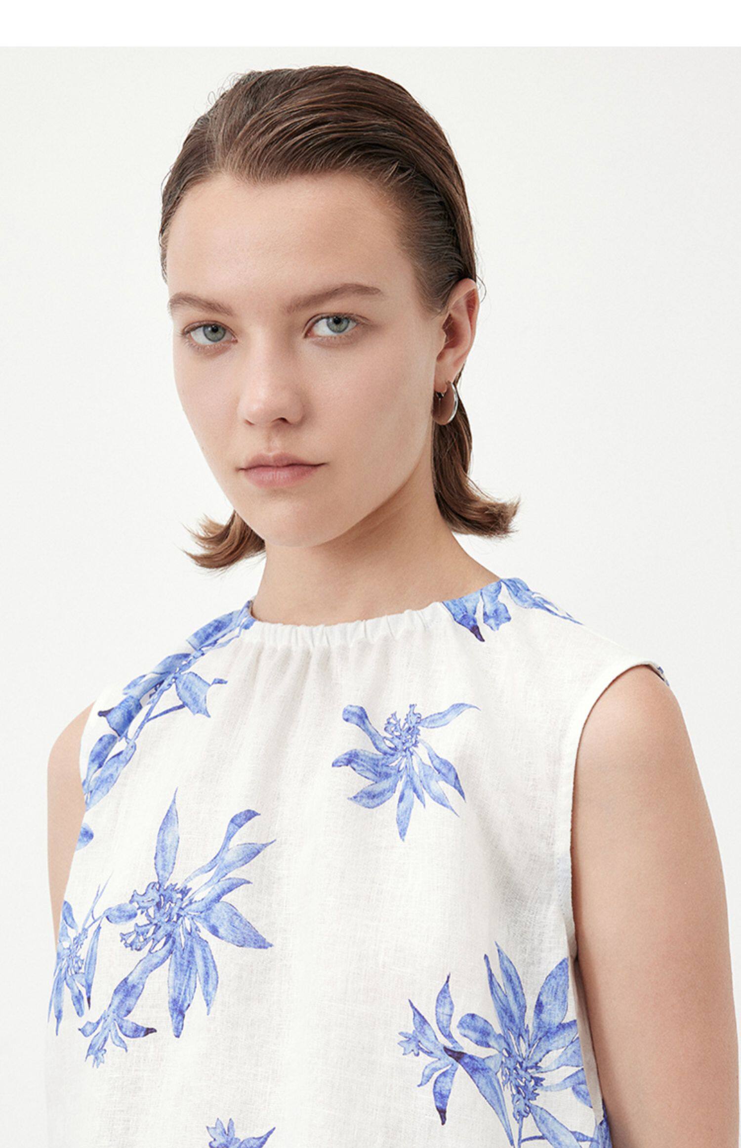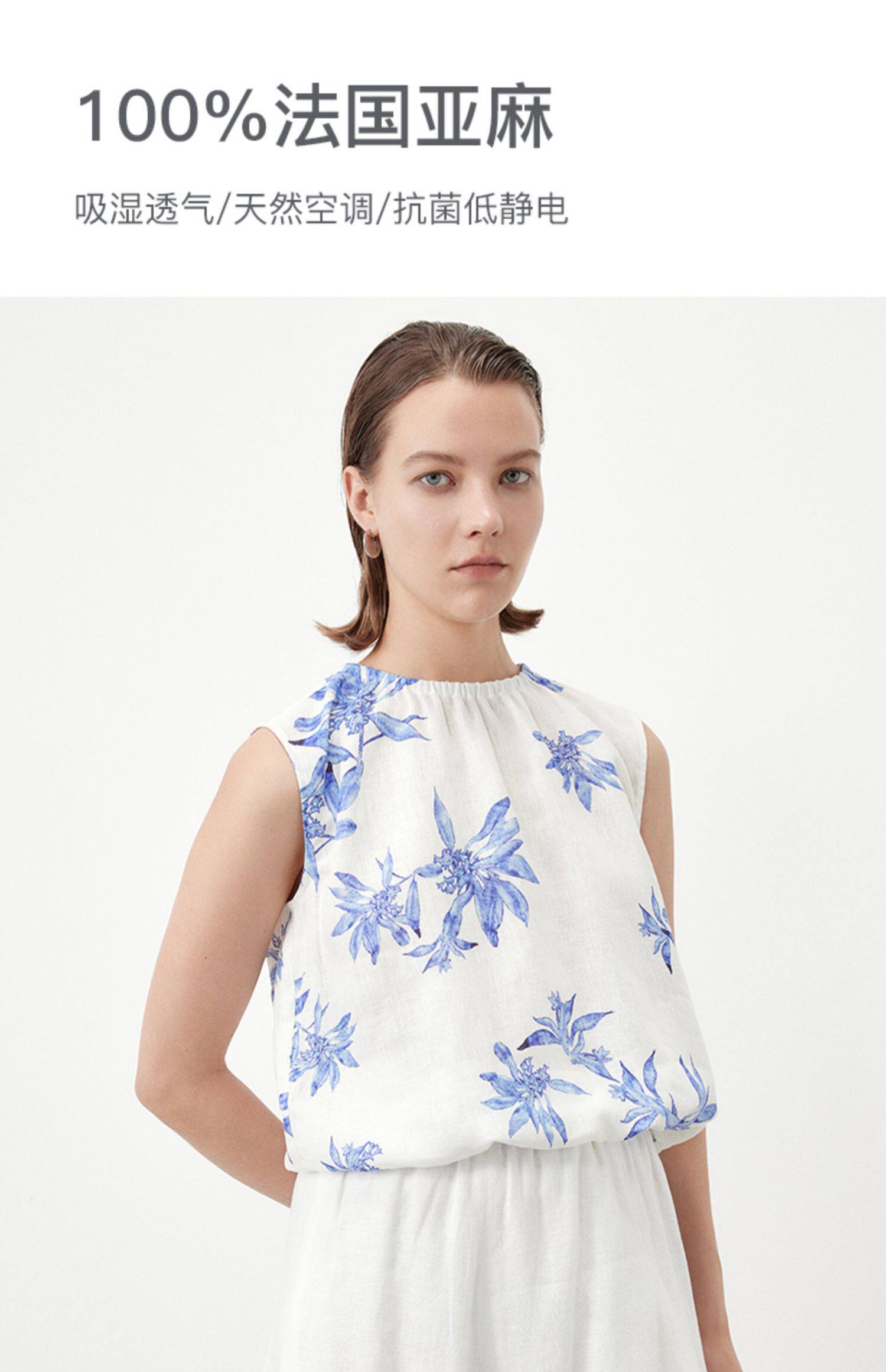 Marc O'Polo/MOP夏季新款好看植物印花亚麻打褶无袖背心女士上衣