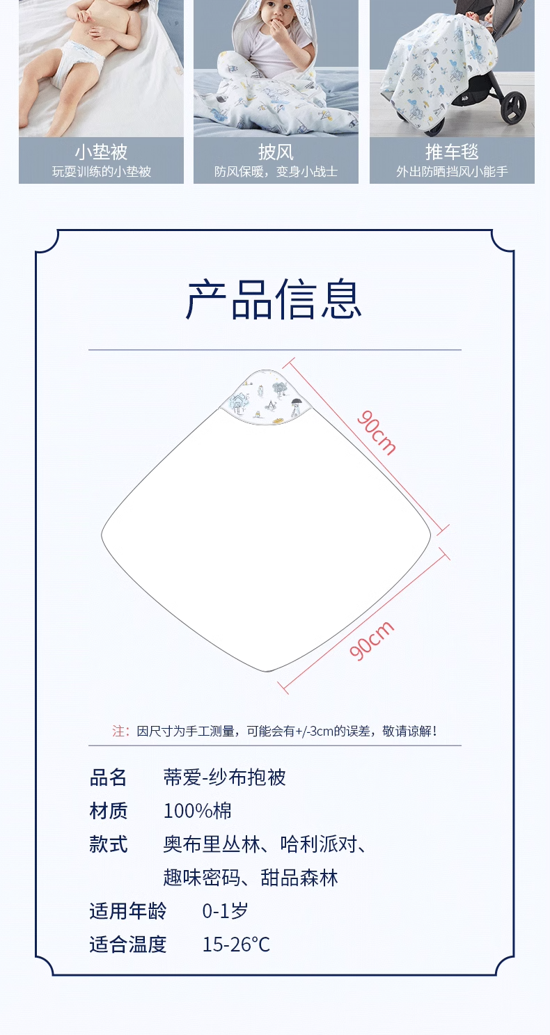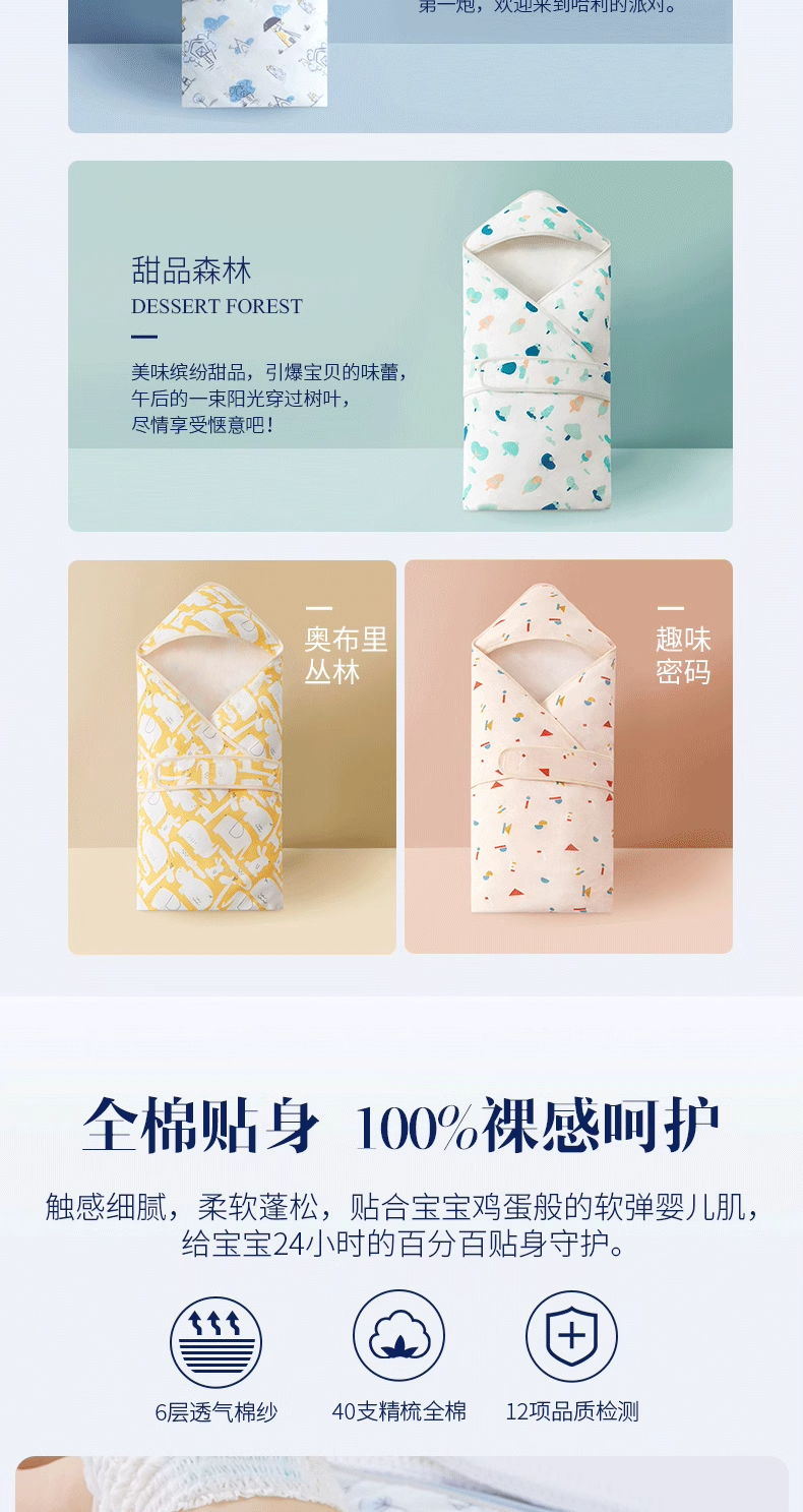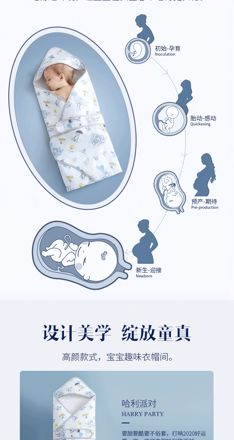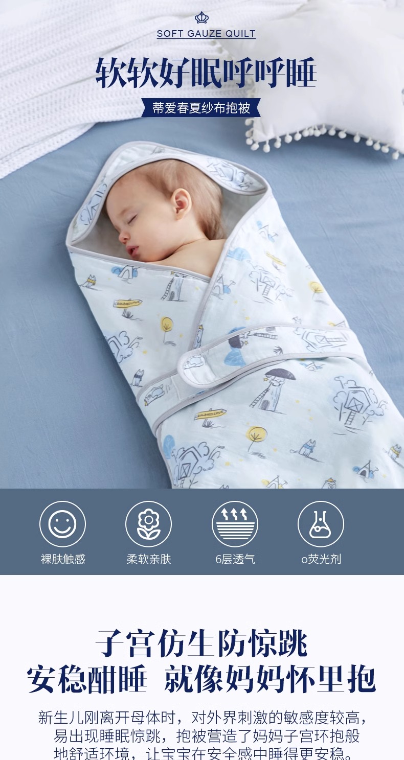 蒂爱包被婴儿初生抱被春秋四季通用产房纯棉睡袋新生儿防惊跳