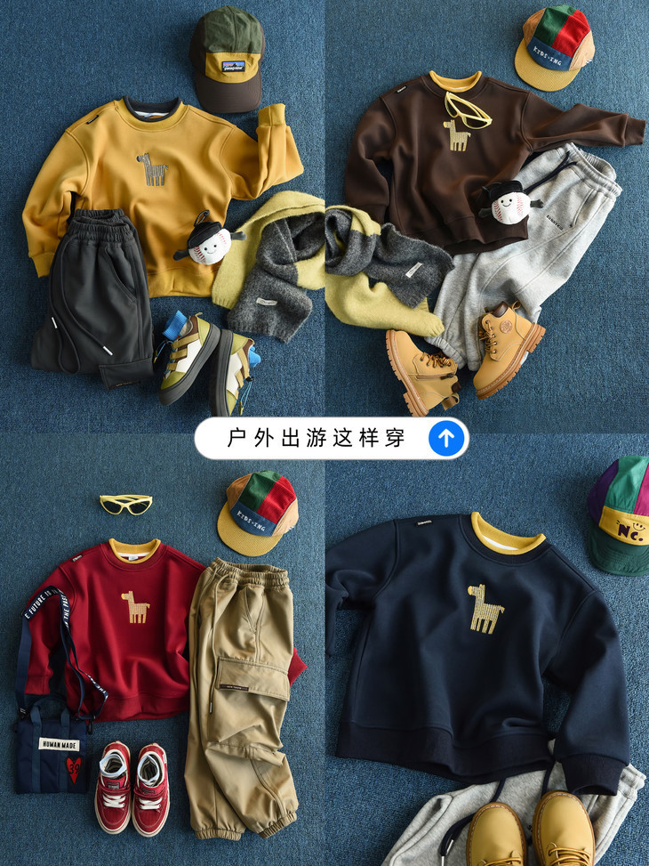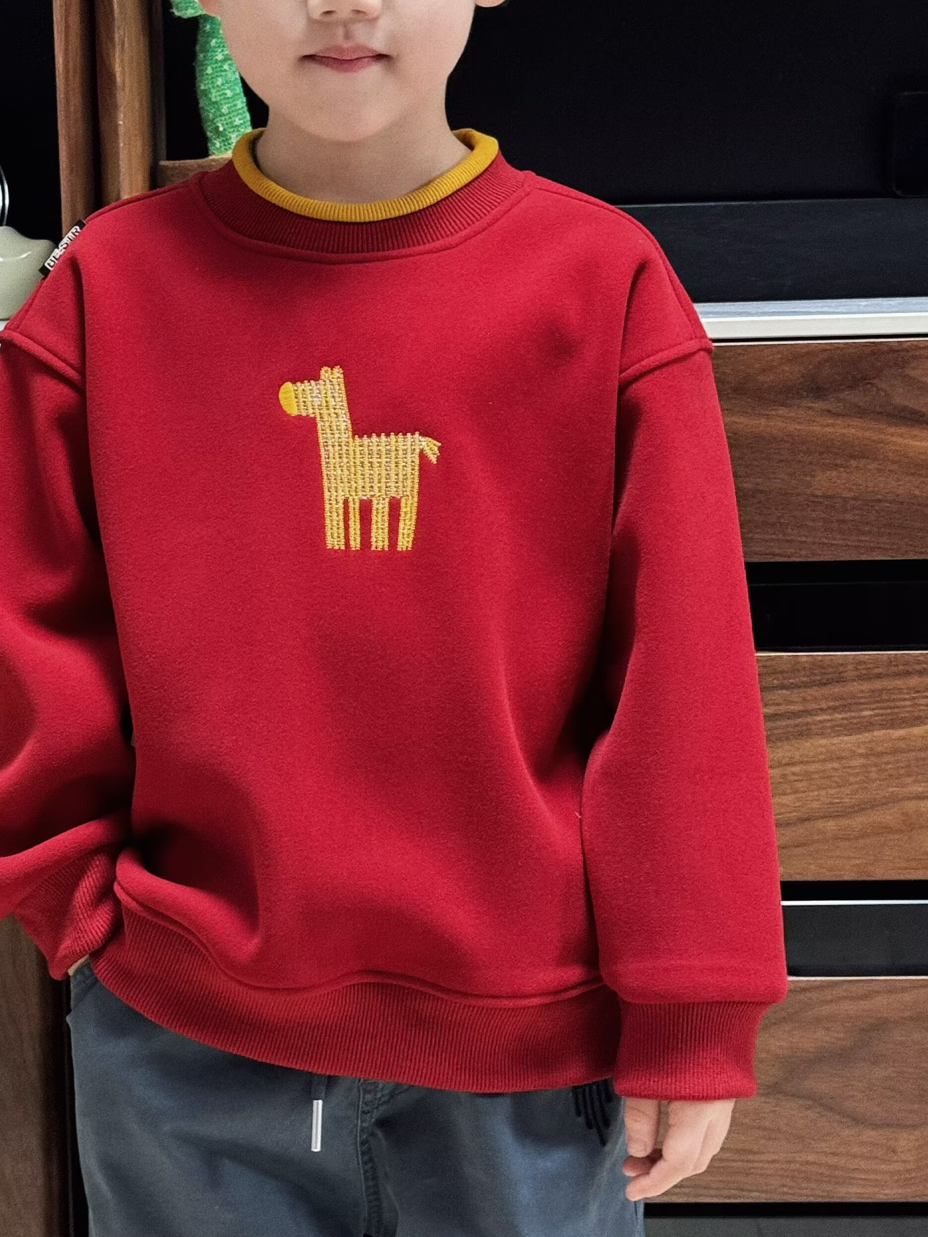 【马上有钱❀儿童加厚摇粒绒刺绣卫衣25822】保暖抗风微防水,撞色圆领设计,设计时尚
