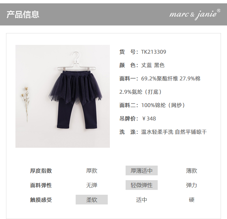 【马克珍妮 法式系列】新款宝宝秋冬装 女童网纱裙裤213309