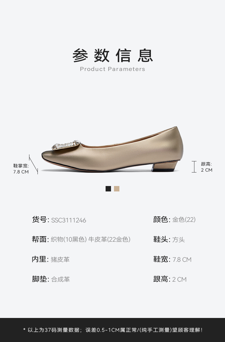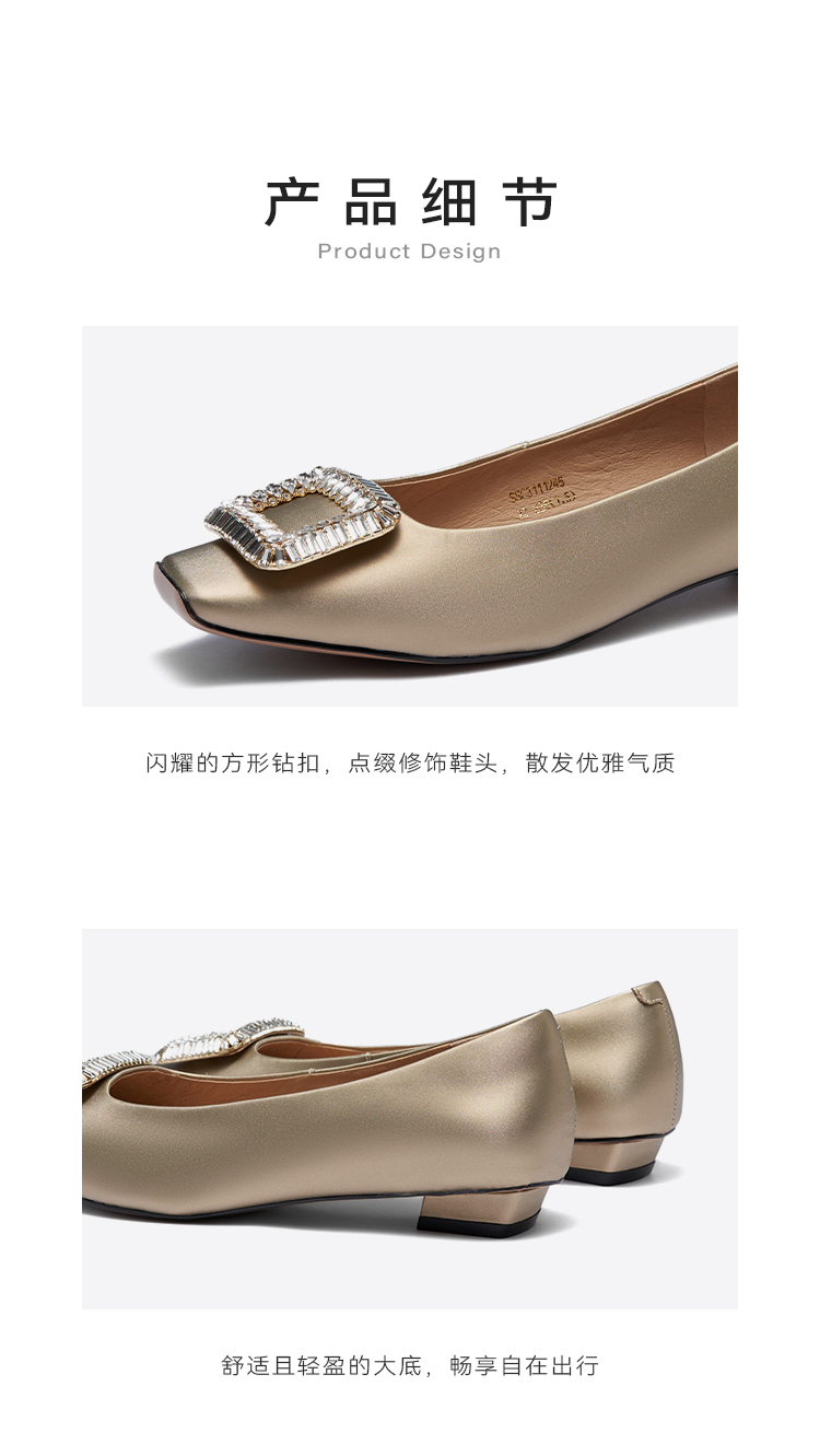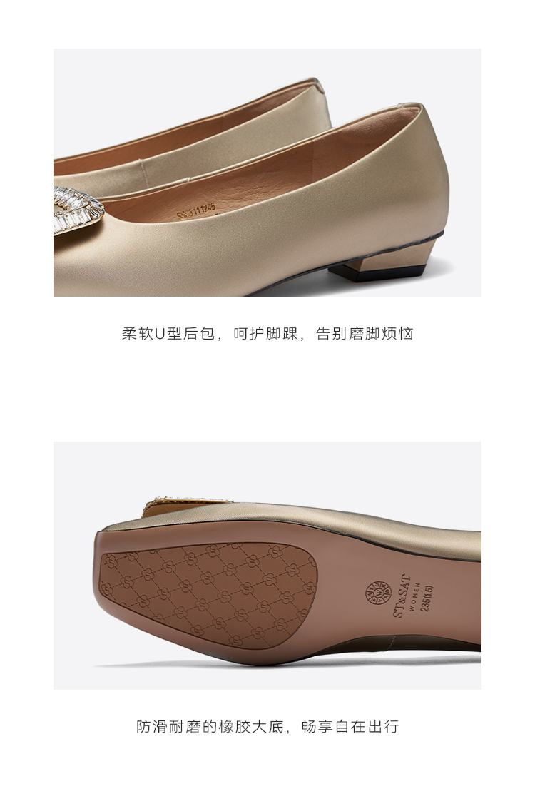 星期六精致方头晶扣粗跟单鞋SSC3111246