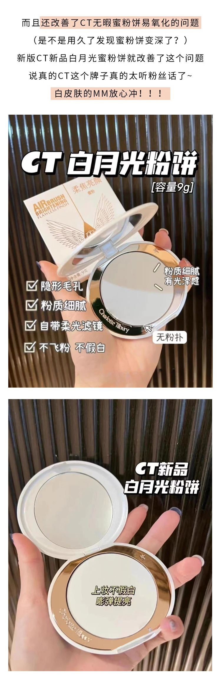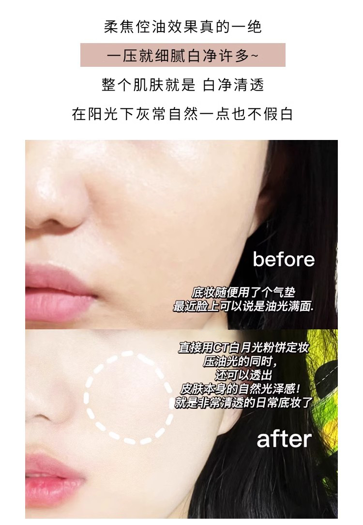 CT白月光柔焦亮颜蜜粉饼嘭弹面中定妆哑光不易脱色【CDF】