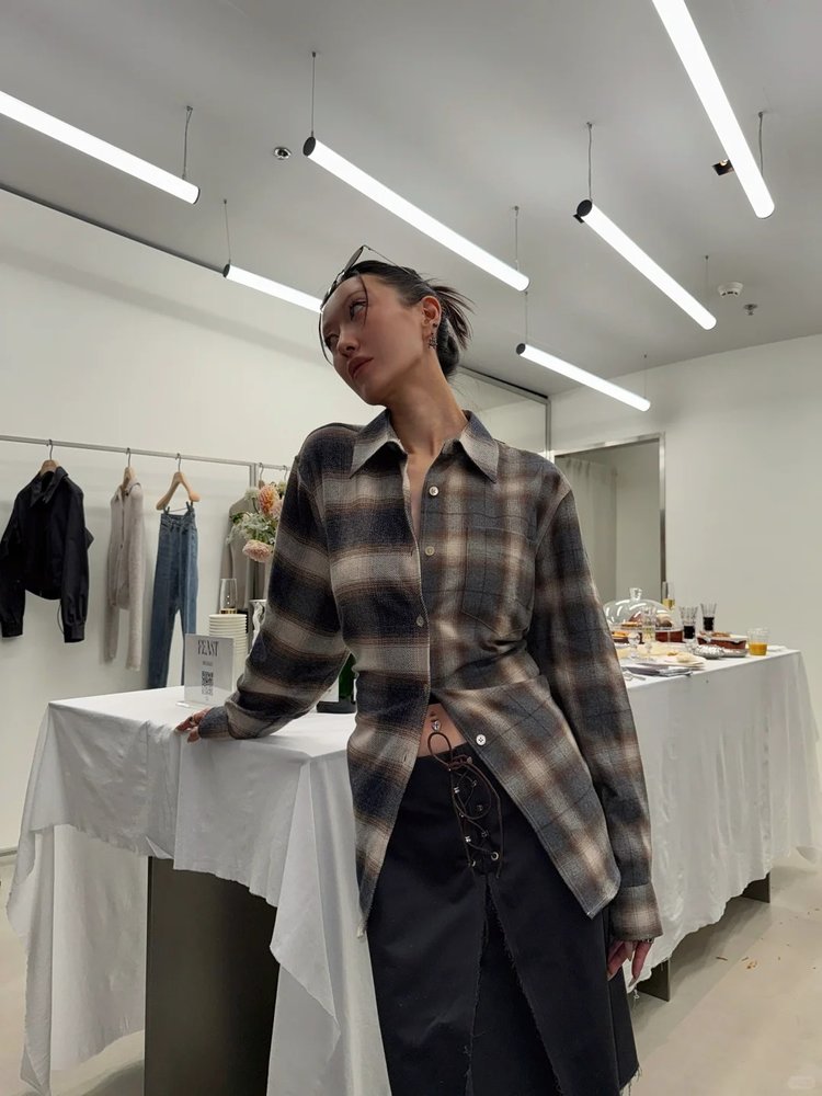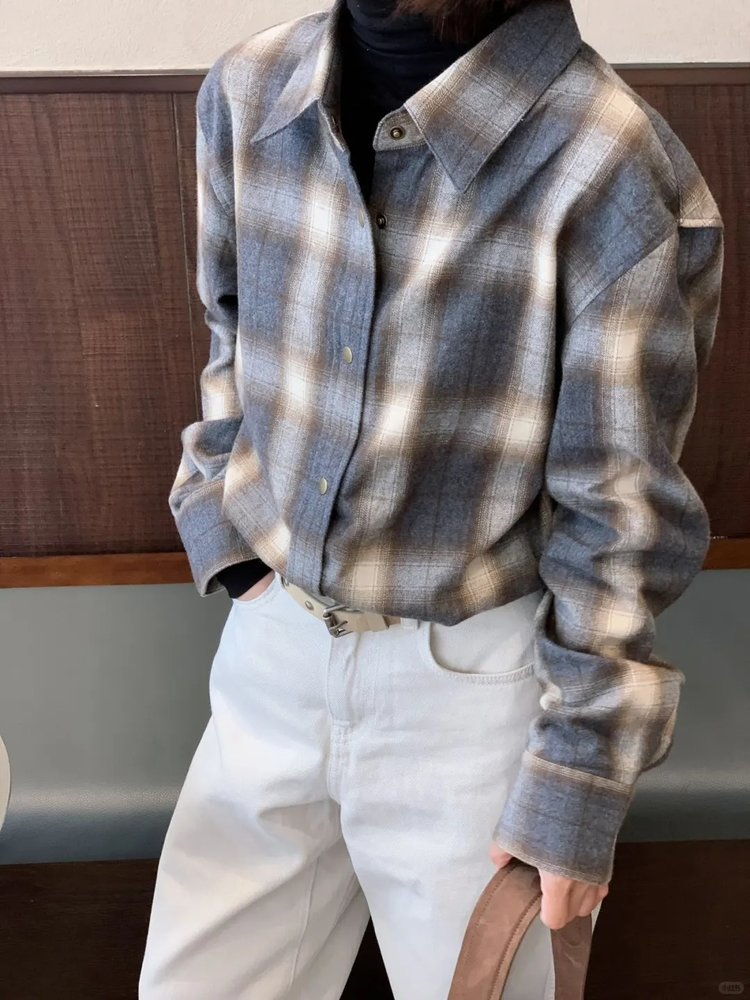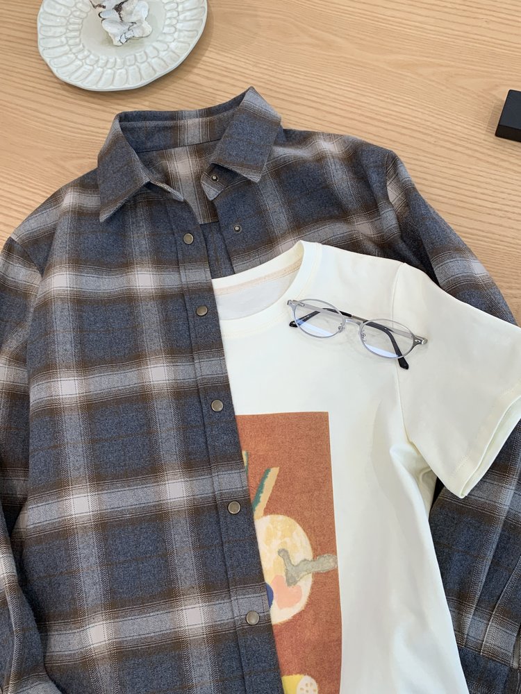 【高品质私服】【MC双面磨毛棉质渐变格纹衬衫】蓬松感与利落感达成微妙平衡G1653-CC【无标出货 介意慎拍】