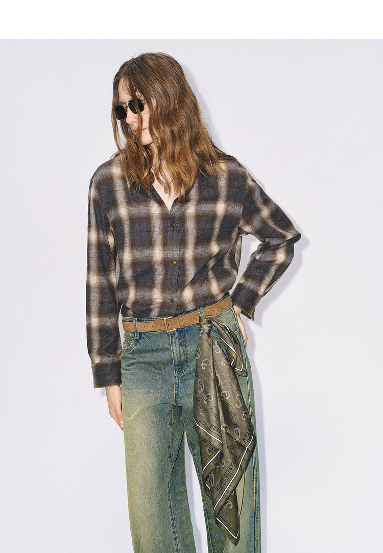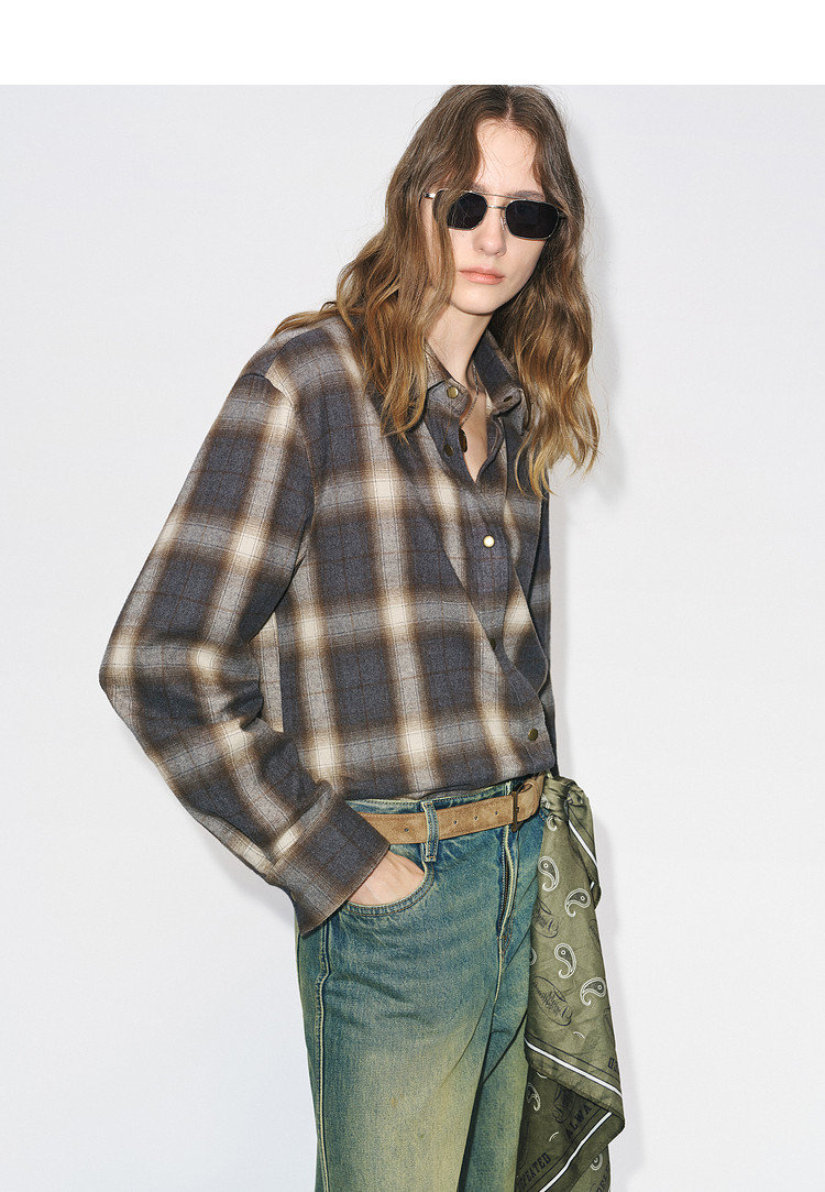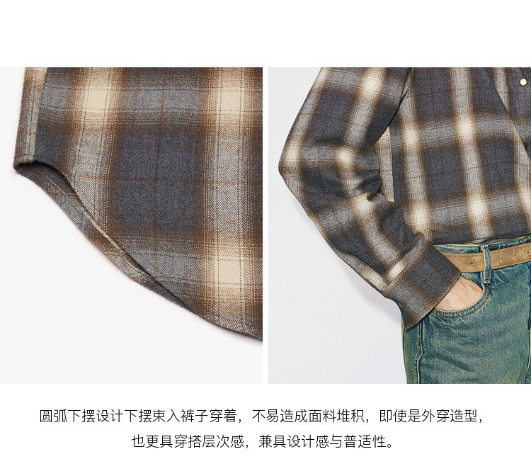 MC双面磨毛厚实棉质渐变格纹衬衫,是身体的气质折叠术
