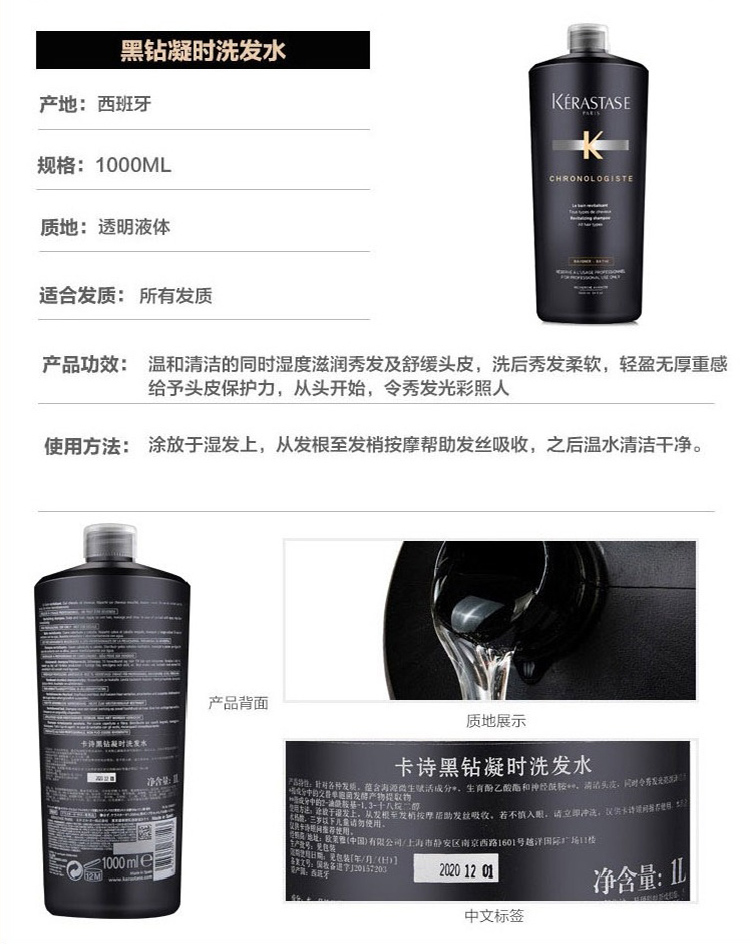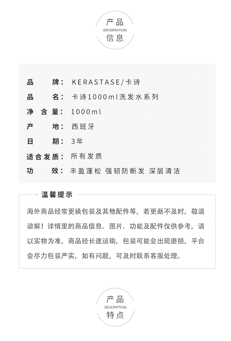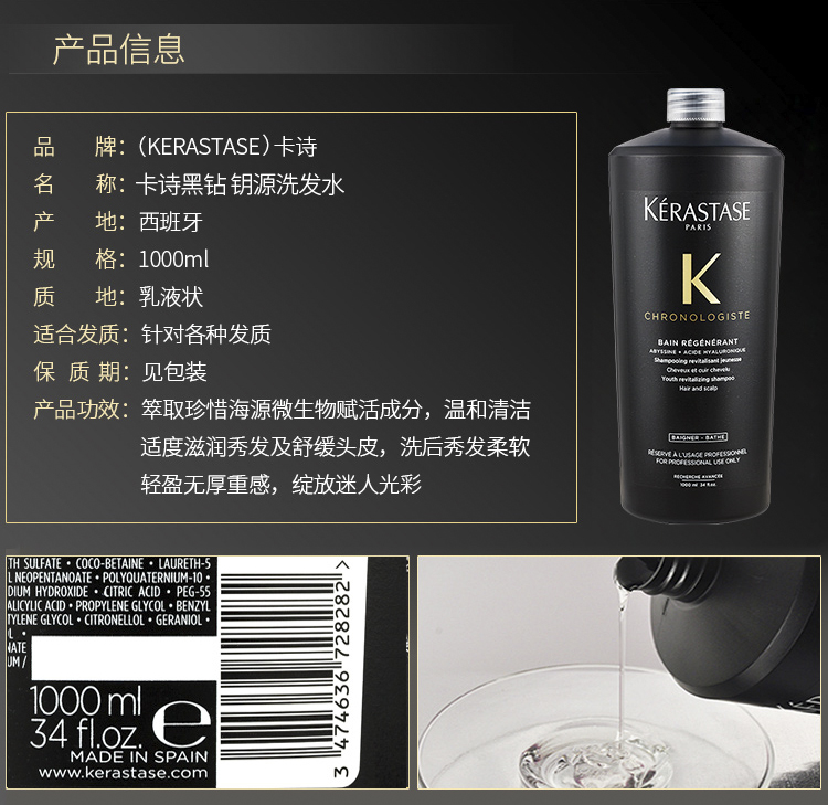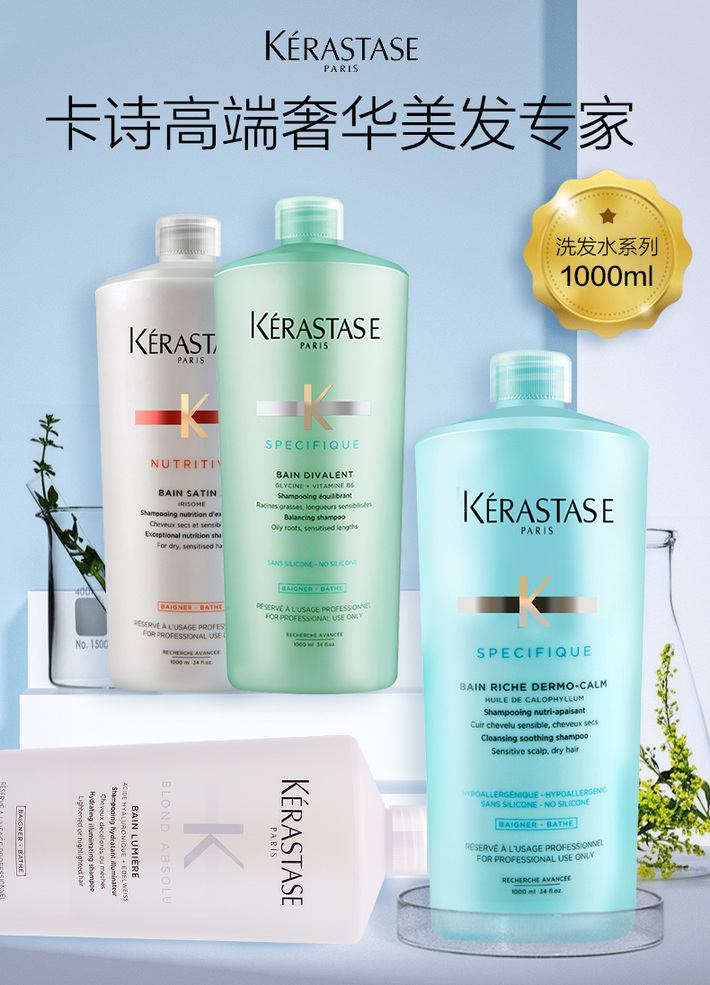 卡诗双重功能洗发水1000ml控油防脱去屑纤细根源特护洗发露