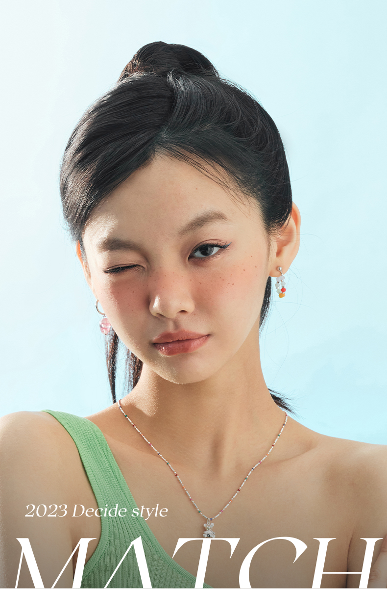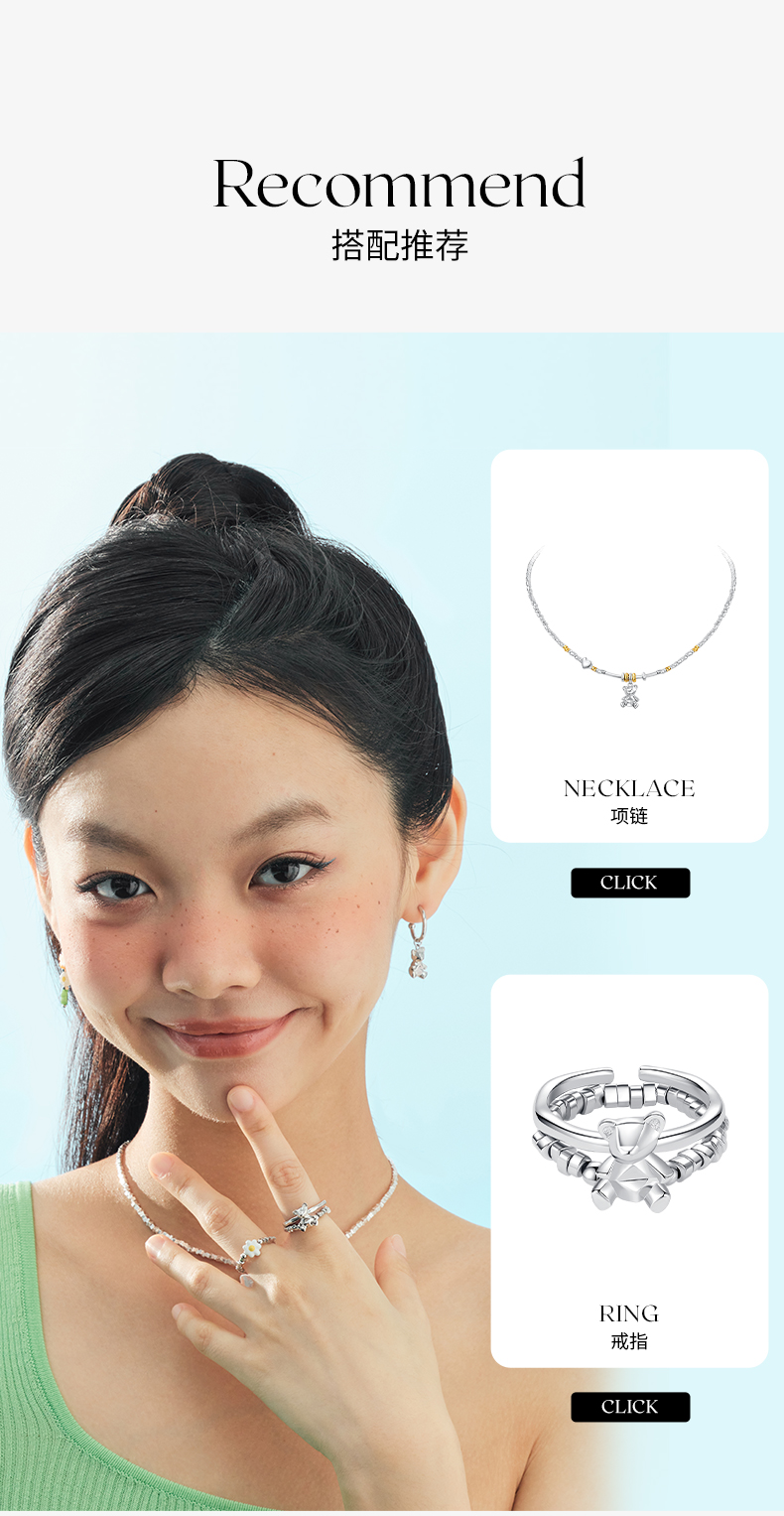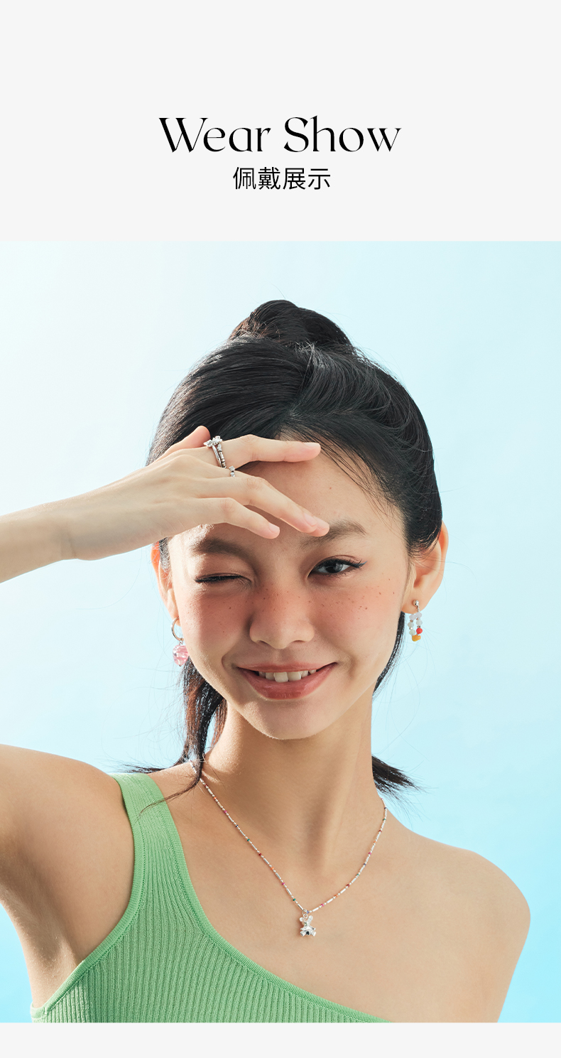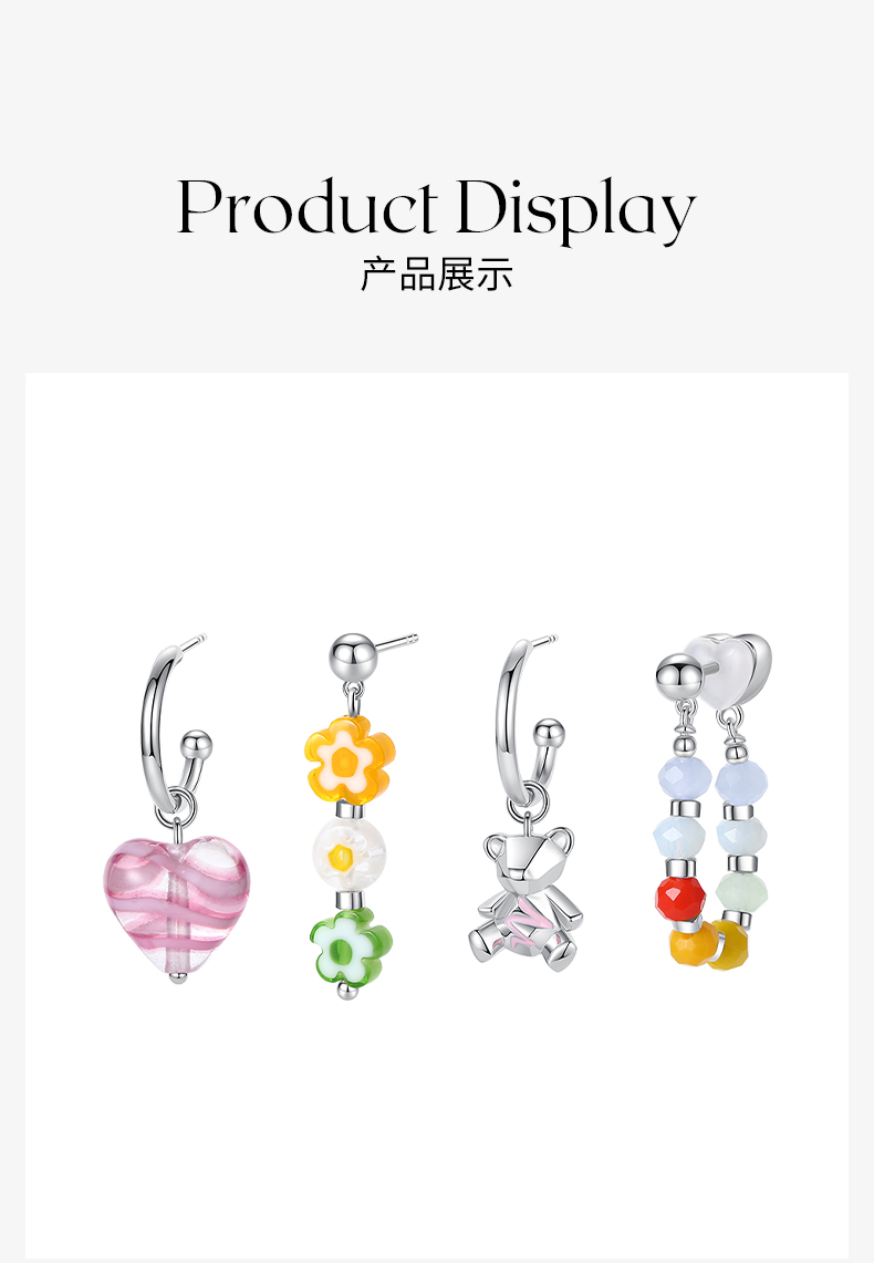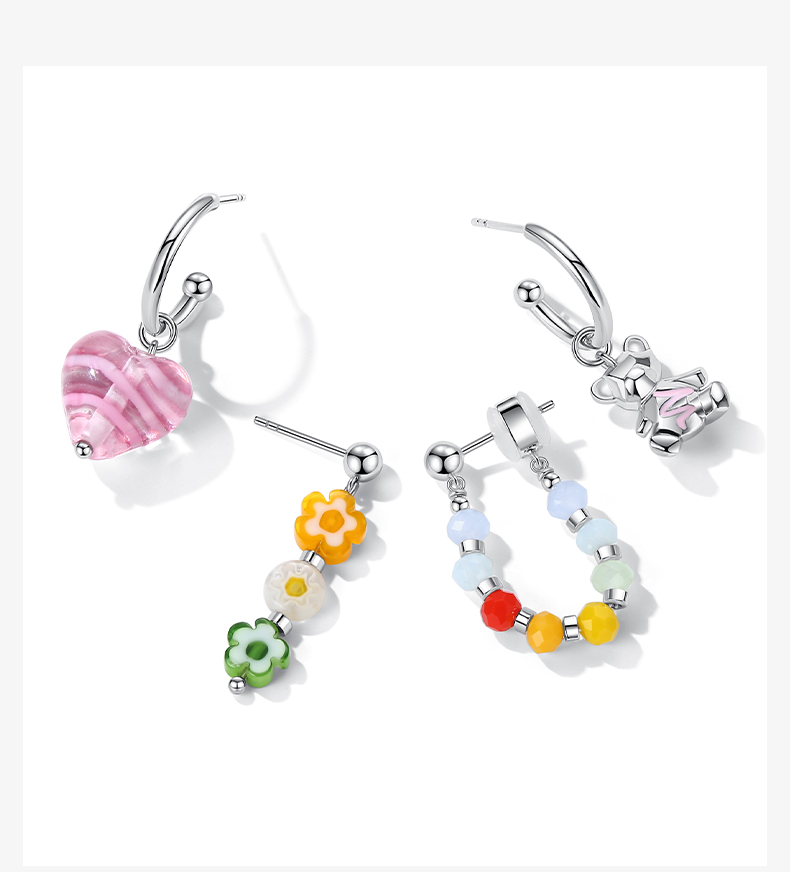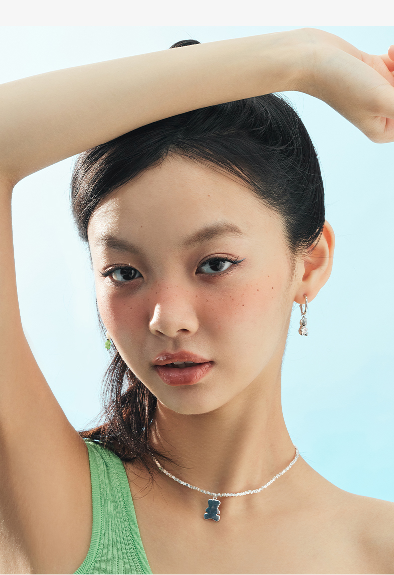 ZEGL设计师小熊系列彩色串珠多巴胺耳环女小众设计感耳钉银针耳饰