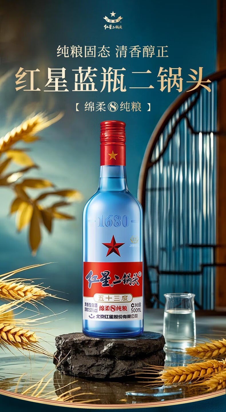 53°红星二锅头绵柔8年蓝瓶 500ml