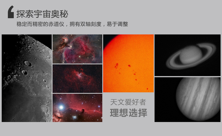 在保留了一代光学品质出众的主镜的基础上,换装了载重更大、稳定性更强、拓展性更丰富的改进型EQ2赤道仪。改进型EQ2赤道仪可接驳2种马达使得这款望远镜功能更加丰富。