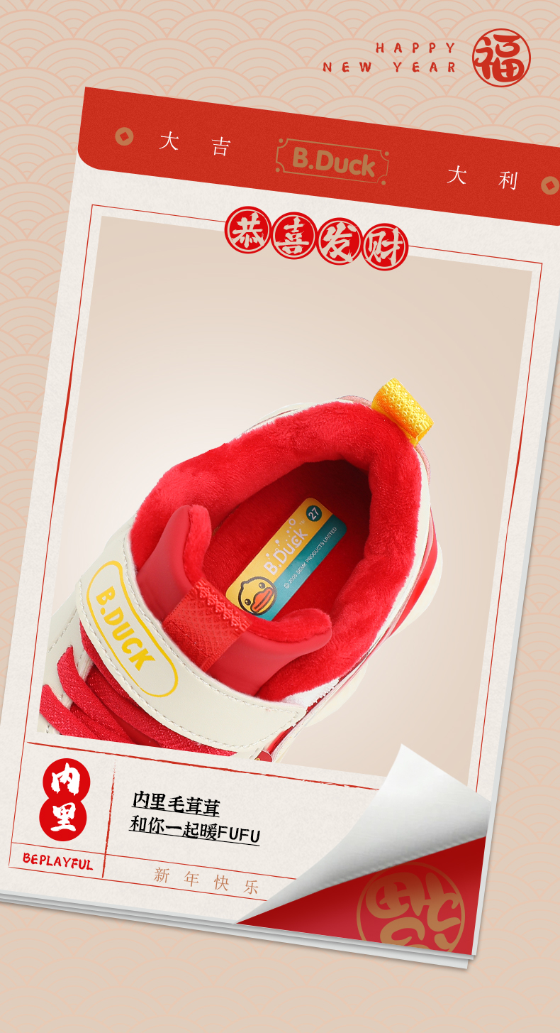 B.DUCK小黄鸭童鞋冬季男女童常规运动26-30 B5586930