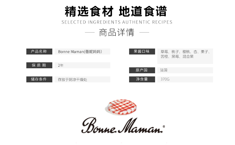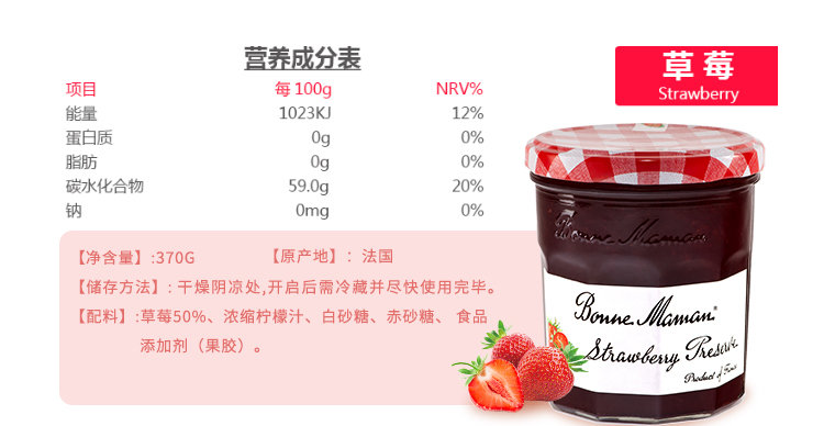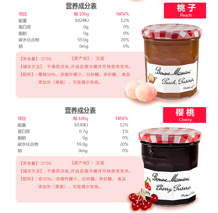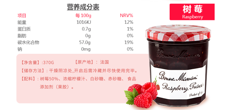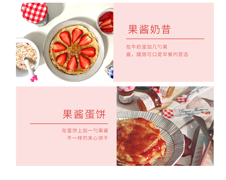 【超值两瓶装!】法国蓓妮妈妈370g家庭装 经典田园法式红白格纹果酱 草莓树莓樱桃 法国进口 无色素无防腐 大瓶家庭分享 甜点早餐