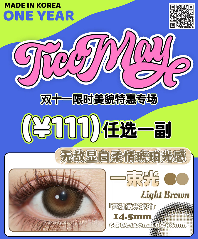 【小红书推荐款】Ticc May 冰红茶 直径 14.5/标注着色13.9实际着色16.0,111/一副,最高度数有1000