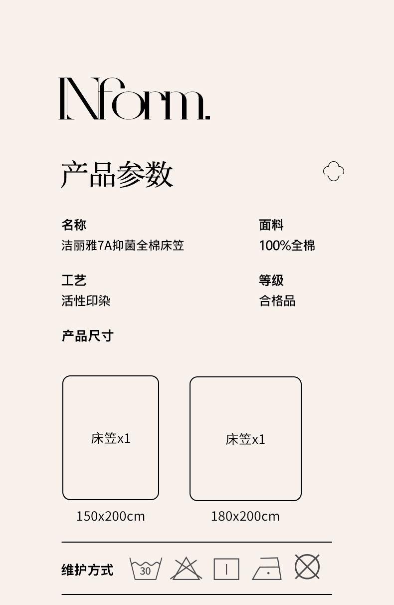 洁丽雅7A抑菌床笠单件防水床罩席梦思床垫保护罩床套罩