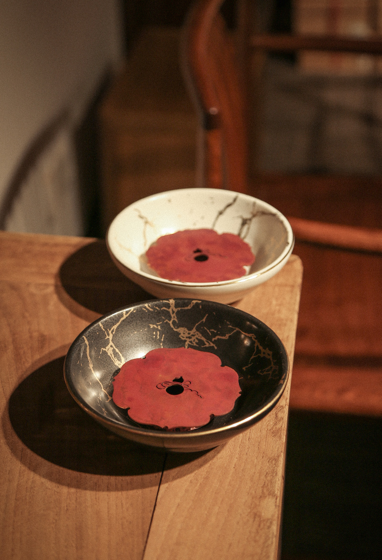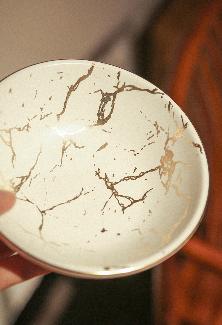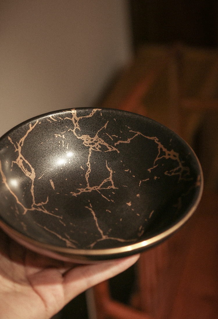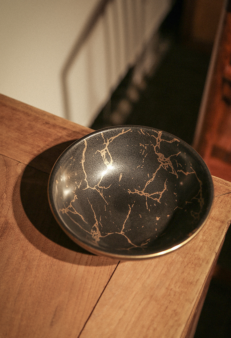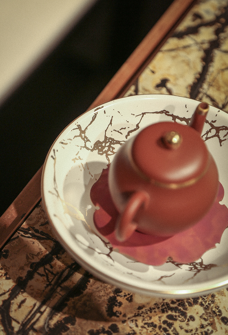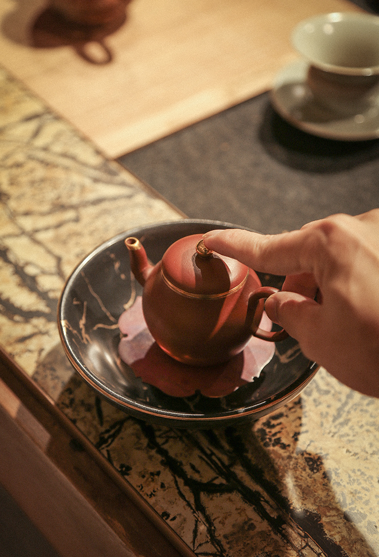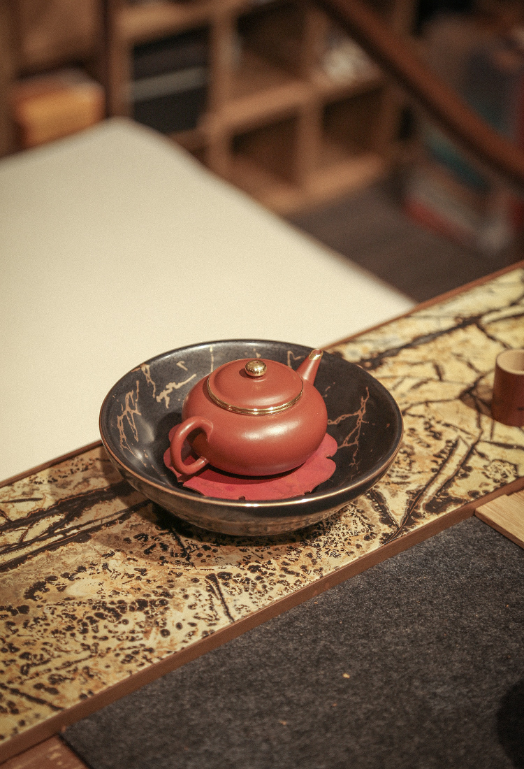 南越浅碗中式亚光白黑金箔茶承壶承铜茶托养壶盘干泡盘储水陶瓷