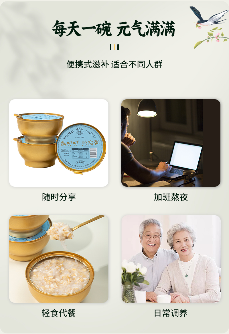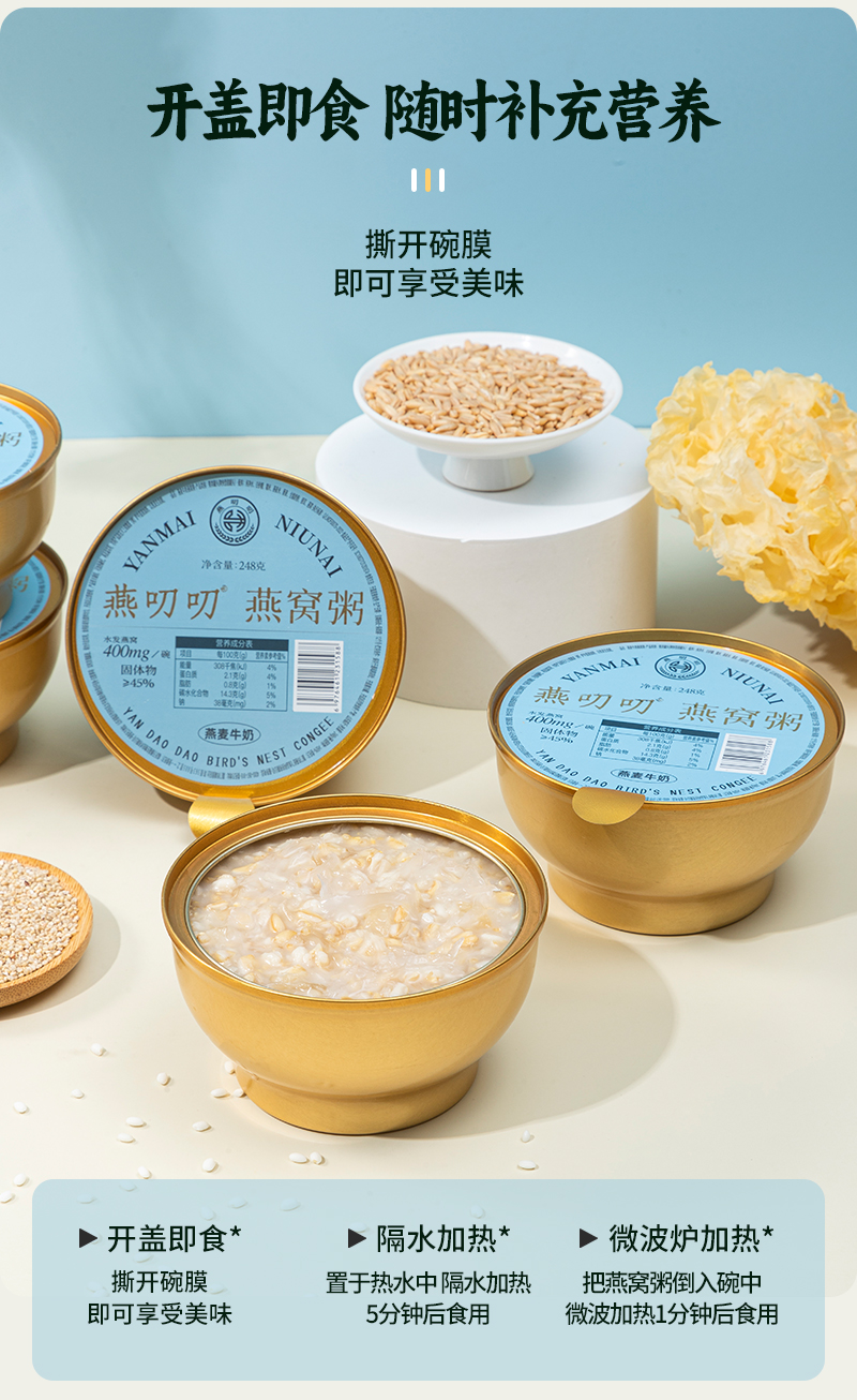燕叨叨燕麦牛奶燕窝粥礼盒248g*6碗 代餐粥速食粥孕妇即食燕窝年货送礼