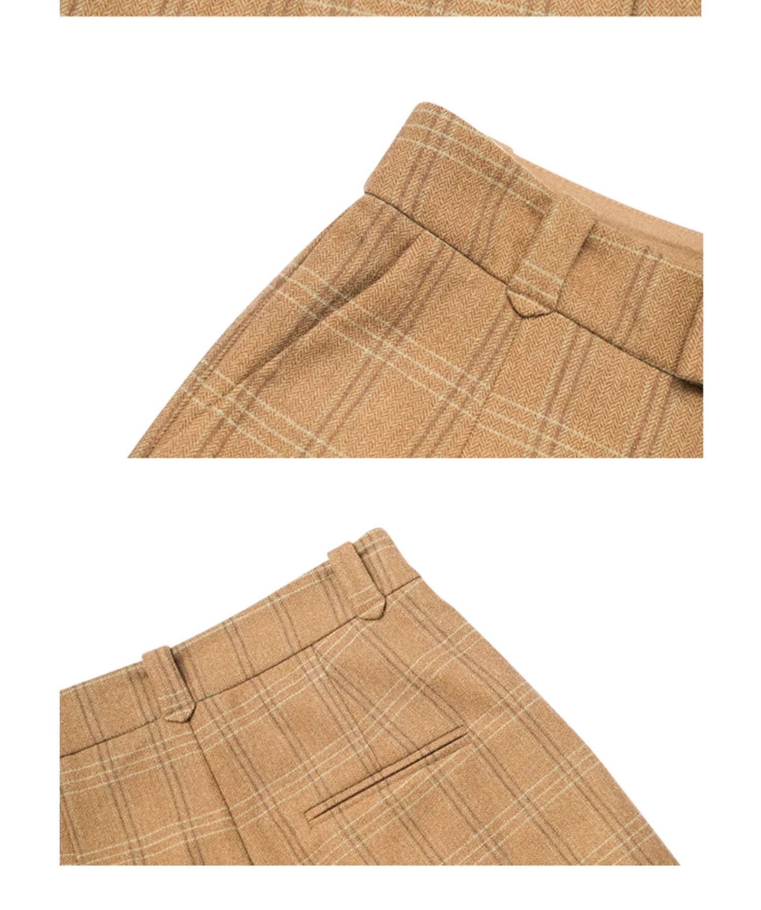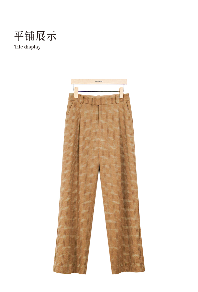 oldcolour冬季新款复古气质百搭格子西装休闲阔腿长裤女P450703A1