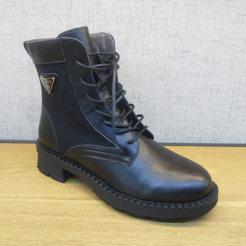 豪行女鞋秋冬款20362812英伦厚底马丁靴真皮透气百搭女短靴