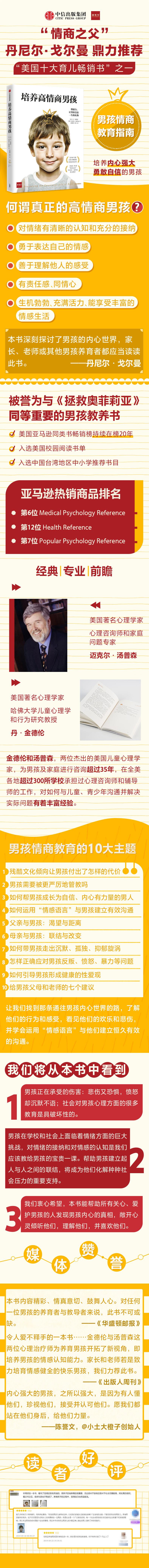 男孩情商教育指南,培养内心强大、勇敢自信的男孩;美国十大育儿畅销书之一,连续76周登顶《纽约时报》亲子教育畅销榜,美国亚马逊同类书畅销榜持续在榜20年;情感力,让男孩受益一生的礼物;《情商》作者丹尼尔·戈尔曼、小土大橙子鼎力推荐