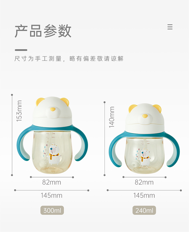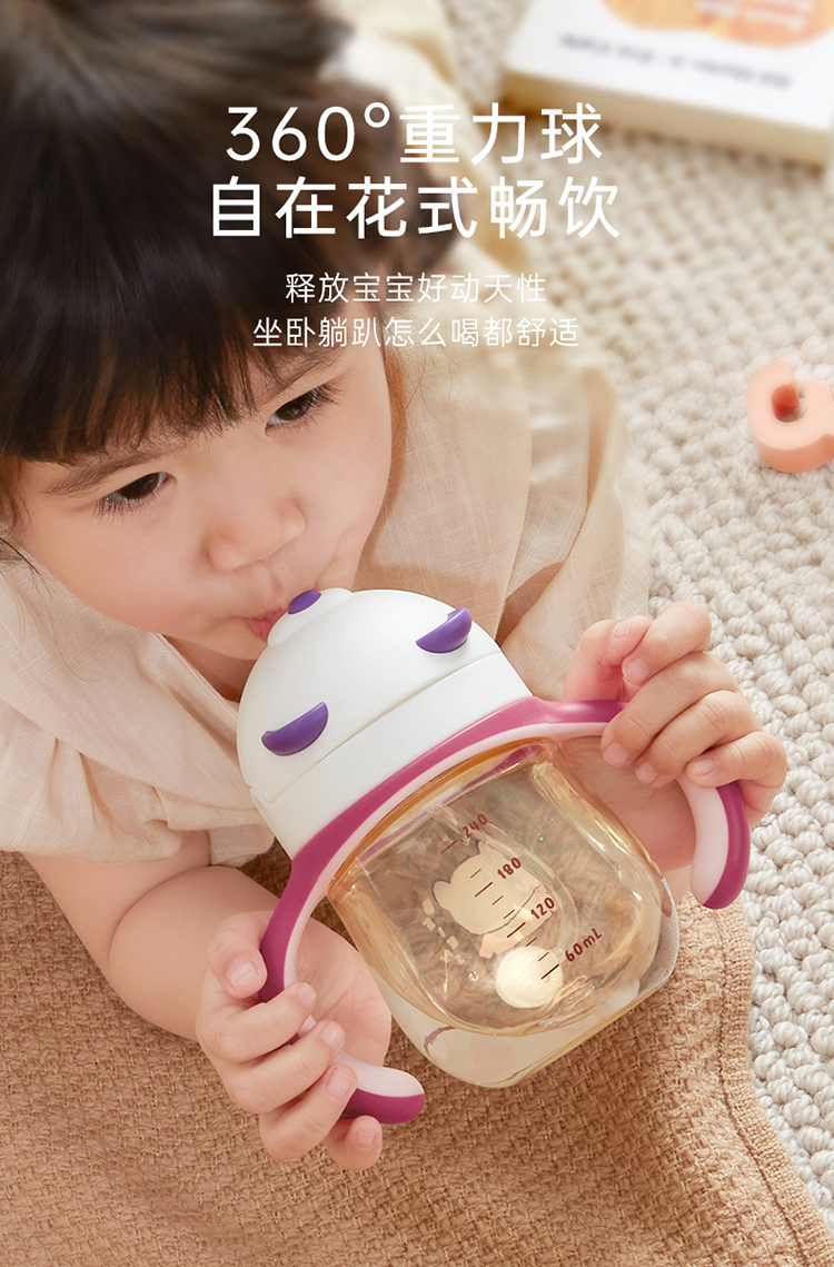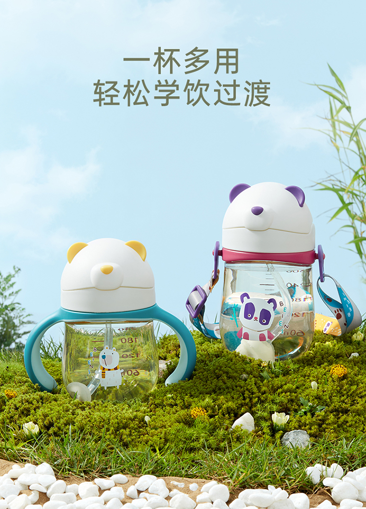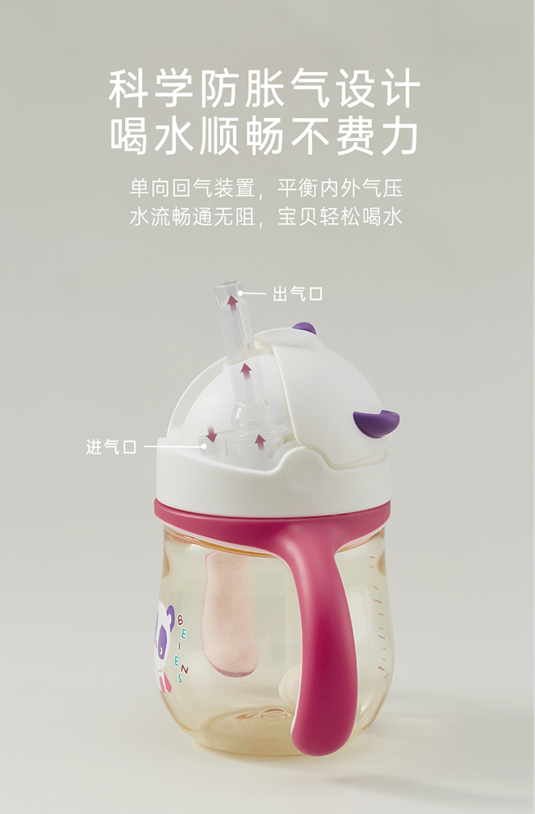 贝恩施宝宝水杯学饮杯鸭嘴杯儿童吸管杯婴儿喝奶杯直饮ppsu带手柄