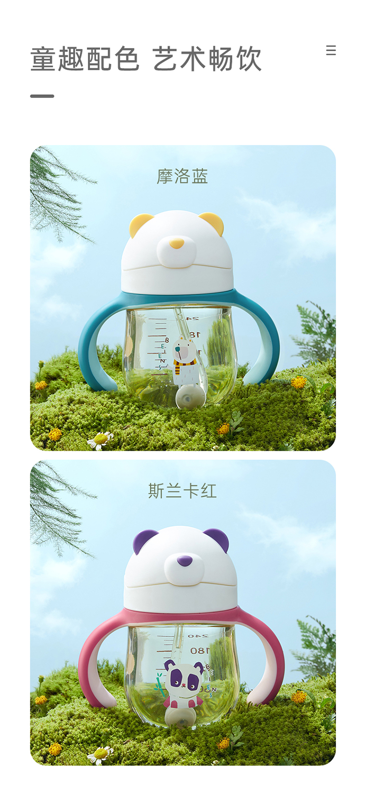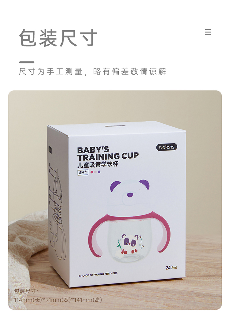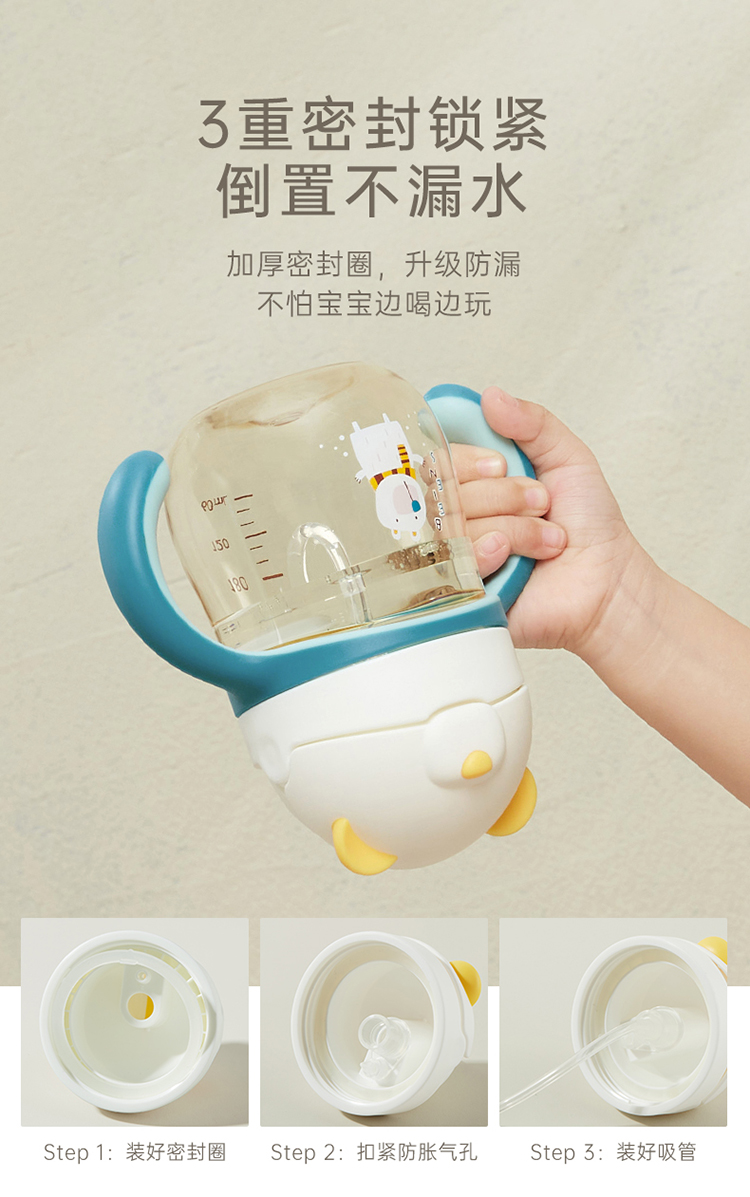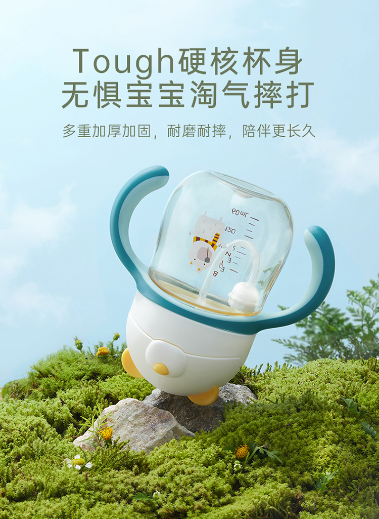 贝恩施宝宝水杯学饮杯鸭嘴杯儿童吸管杯婴儿喝奶杯直饮ppsu带手柄