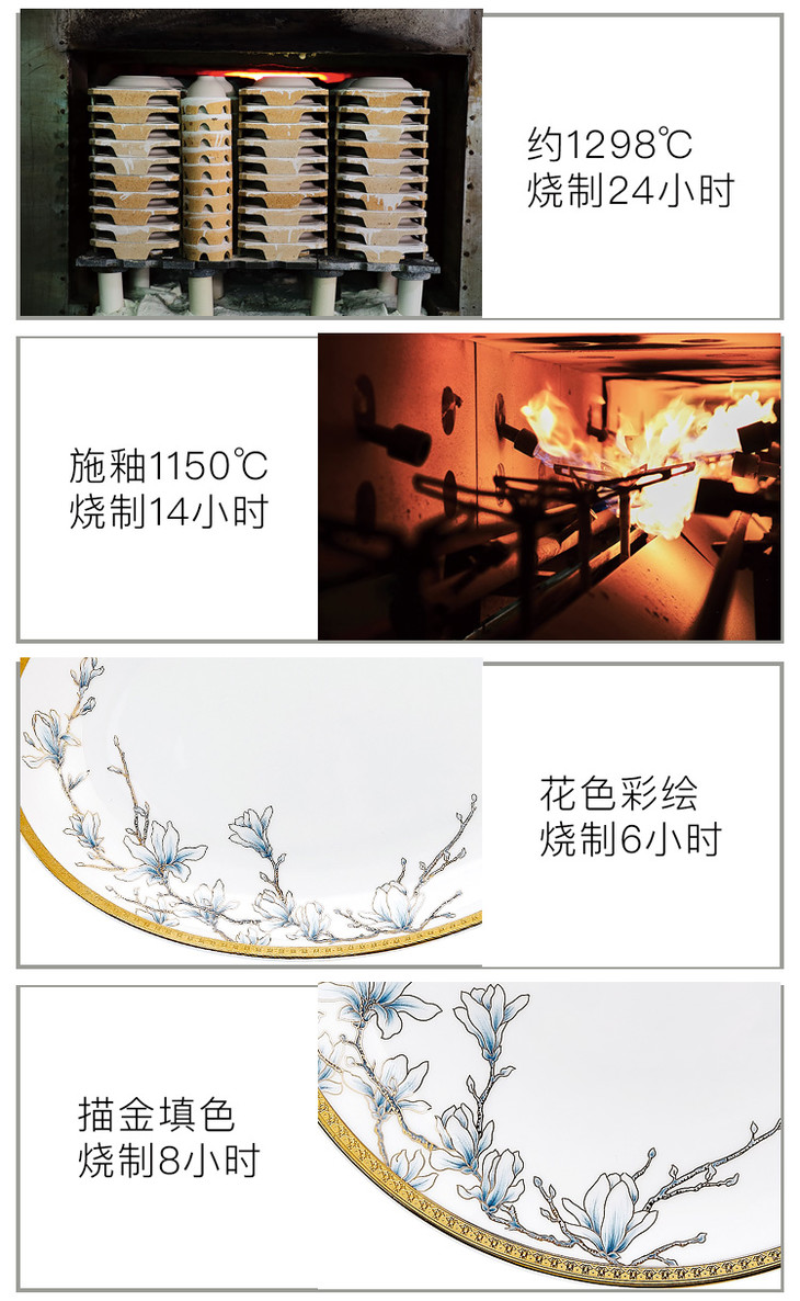 玛戈隆特 玉兰花开珐琅彩36头骨瓷餐具套装家宴版 家用餐具套装