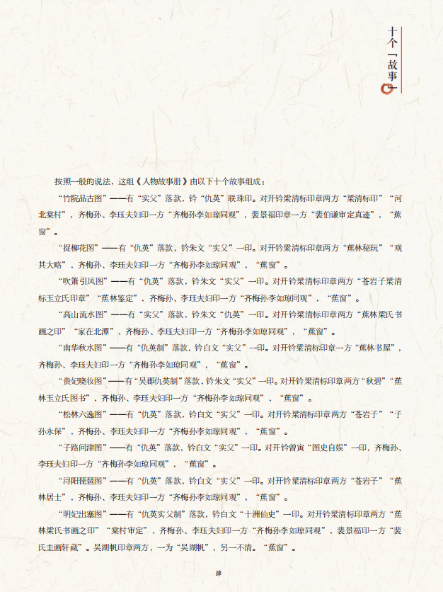 本书正面呈现了仇英《人物故事册》的高清笔触细节,背面则从仇英其人、 仇英的艺术风格特点和十则故事的辨析等方面展开介绍,以帮助读者更轻松地走进中国美术史名作。